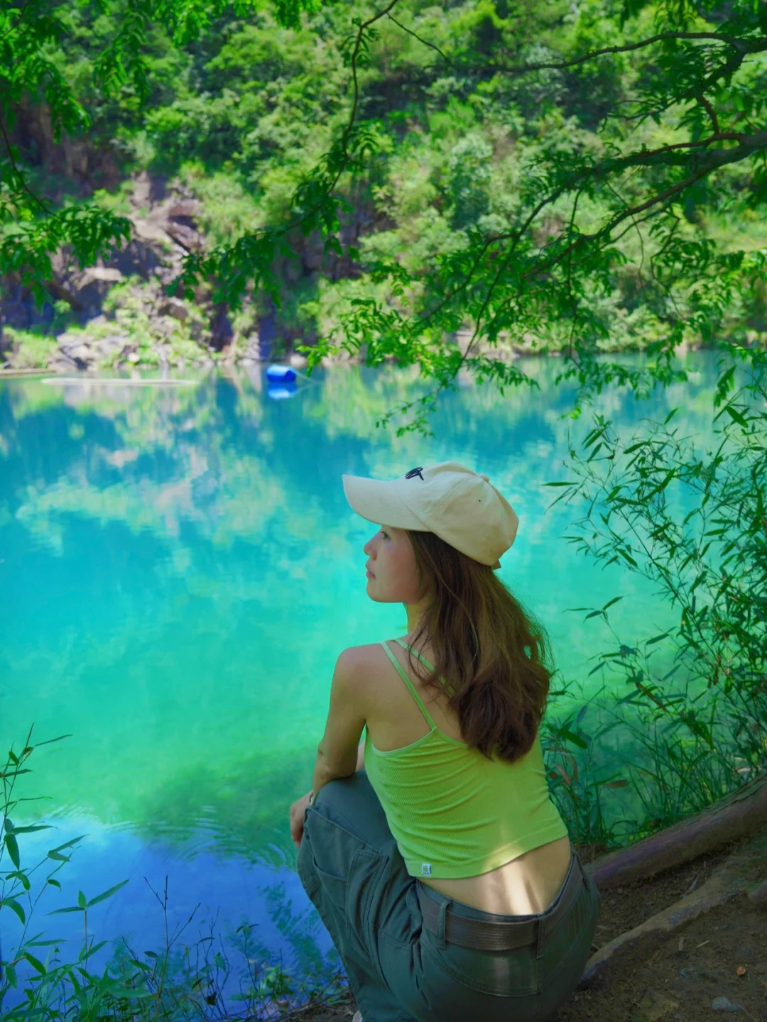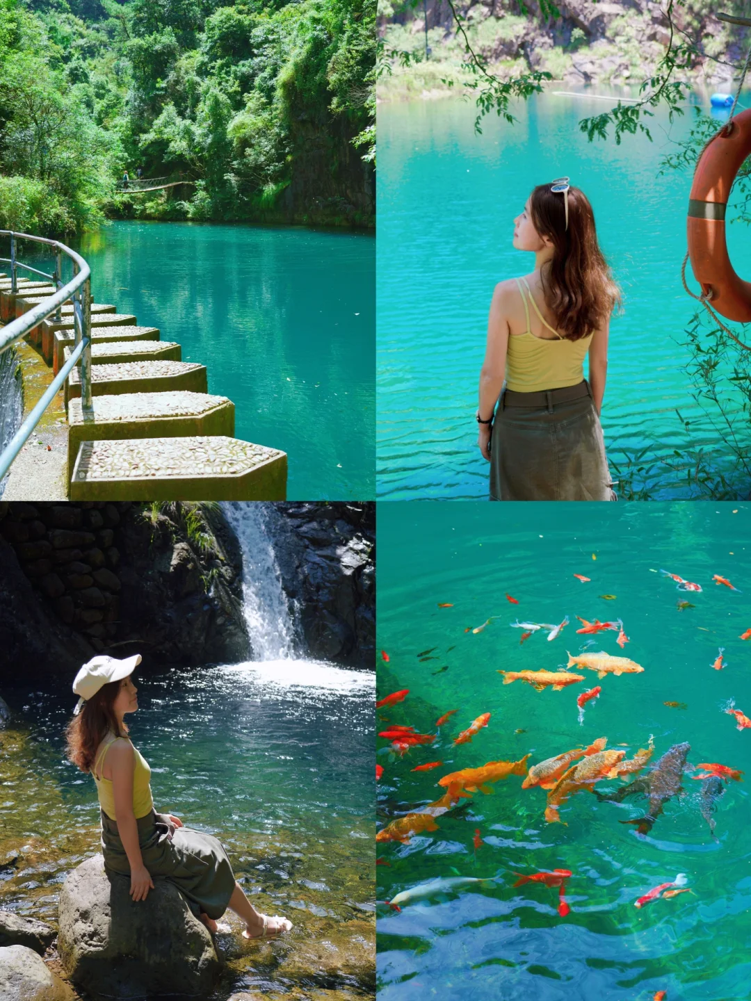妈呀,桐庐大奇山真的绝啊!水蓝得像假的一样😭,live图实拍!答应我!一定要晴天来,根本不需要任何滤镜的,水超级清!小石潭记即视感!