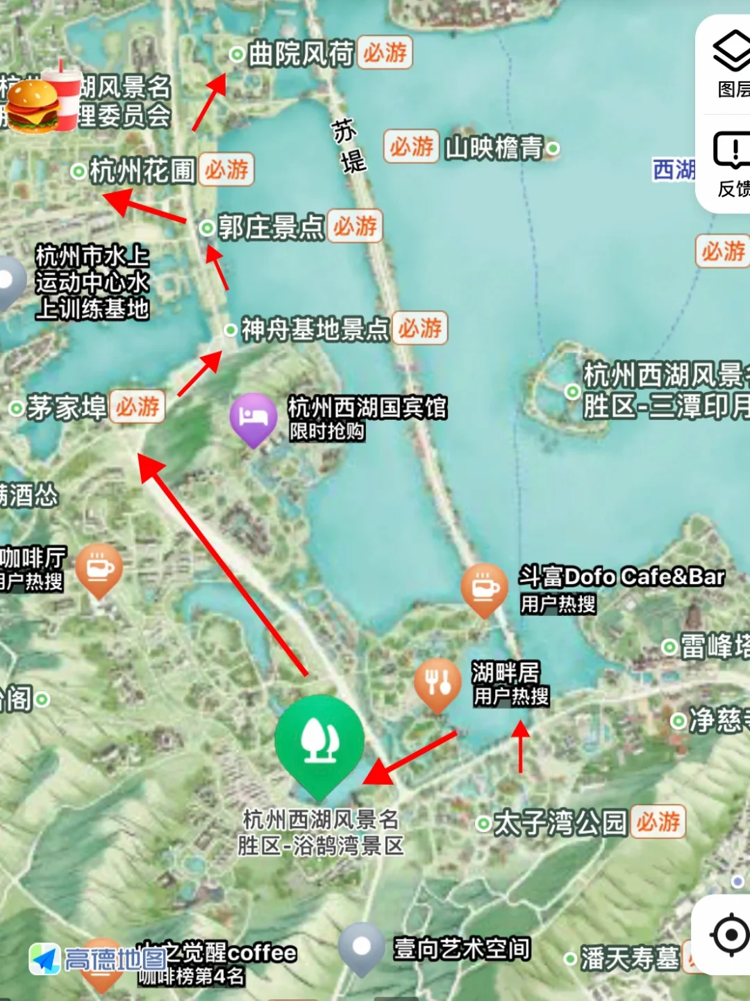 徒步随手拍 笔记灵感 夏天来杭州游玩,我超级推荐西湖边这条徒步路线,一路绿色的秘境🍃,有山有水、有江南赏荷胜地,以及Top级江南园林,还能玩水,惊喜实在是太多了!炎炎夏日也能大口吸氧! 顺时针不绕路路线:虎跑公园→赤山埠→太子湾公园→花港观鱼(苏堤南门入,西门出)→杨公堤→浴鹄湾→乌龟潭→茅家埠→龙泓涧→郭庄→杭州花圃→曲苑风荷→白堤→断桥(反着走也可)