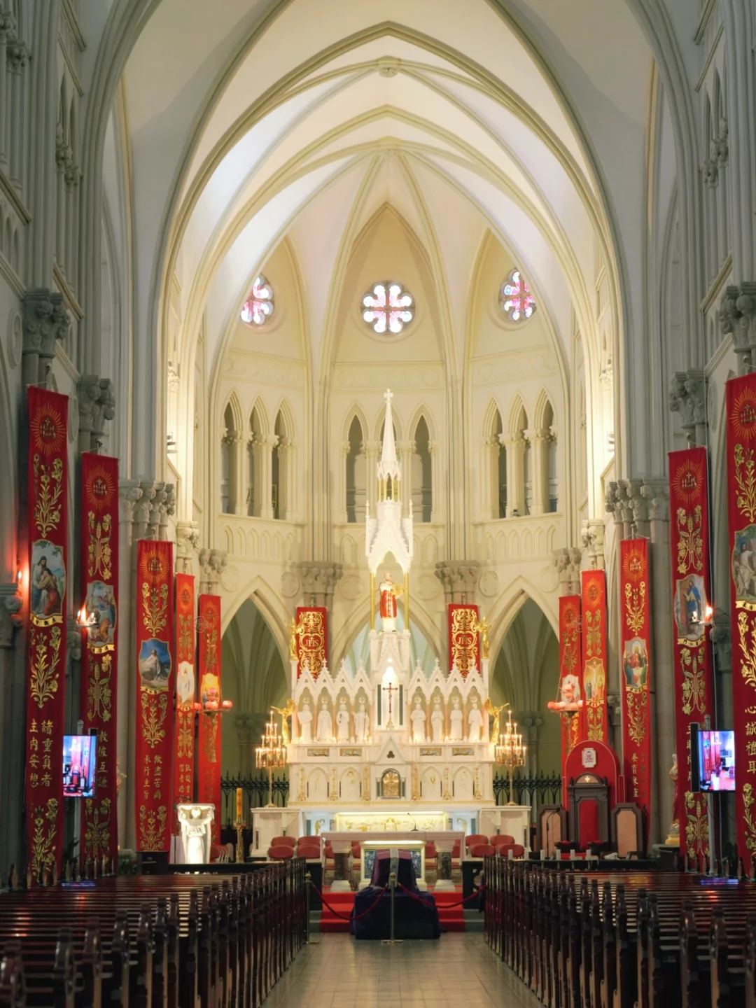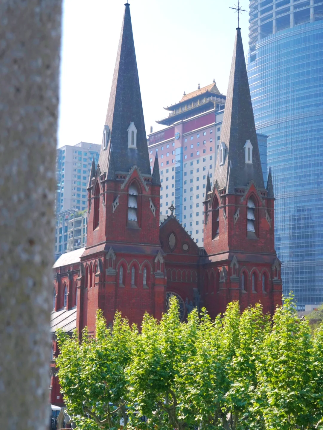 曾经的“远东第一大教堂”,典型的欧洲中世纪哥特式设计风格,整个广场像花园一般,有欧洲散步的feel