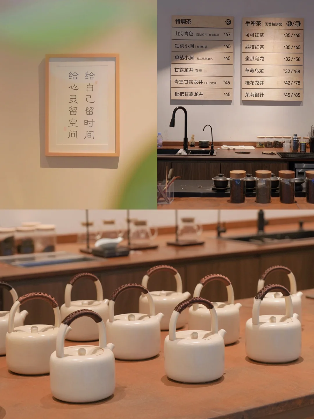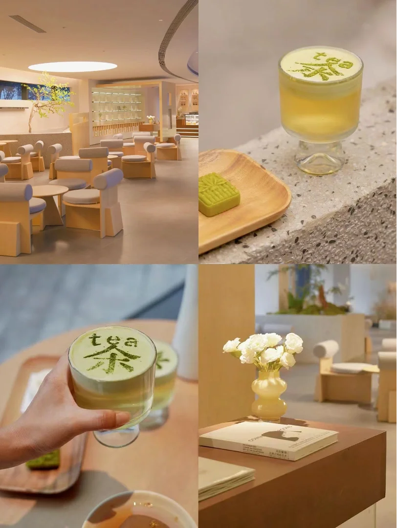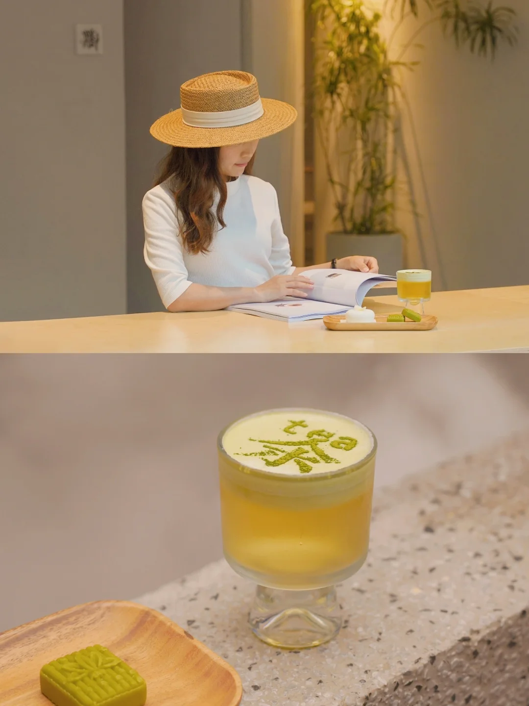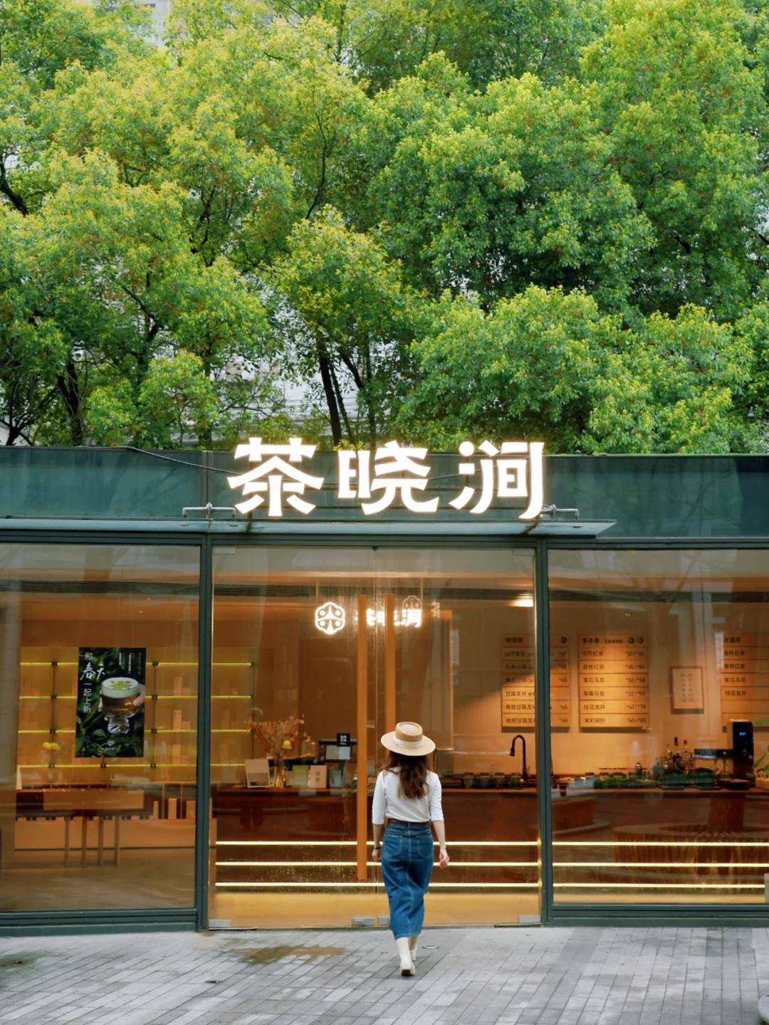 和朋友约着见面,来饮一杯春色🍵 寻了这家隐于写字楼里的中式茶馆 被绿树环绕的氛围,简直就是城市中小森林 弧形的空间设计巧妙,大大落地窗超惬意 真羡慕在附近上班的人,没事就可以过来放松下 看看书📖发发呆,在这里办公💻也颇为不错 挺有创 意的结合,点了杯应季的山河青色 龙井 茶底,棉云般的抹茶奶盖上挥洒了「茶」字 呷一口,满是来自新茶的绿意清新🍃 搭配竹子造型的绿豆糕,好看又好喝😋 在城市中找寻一隅幽静茶馆🍵 细品一壶春茶,偷 得“浮生半日闲” 🍵茶晓涧