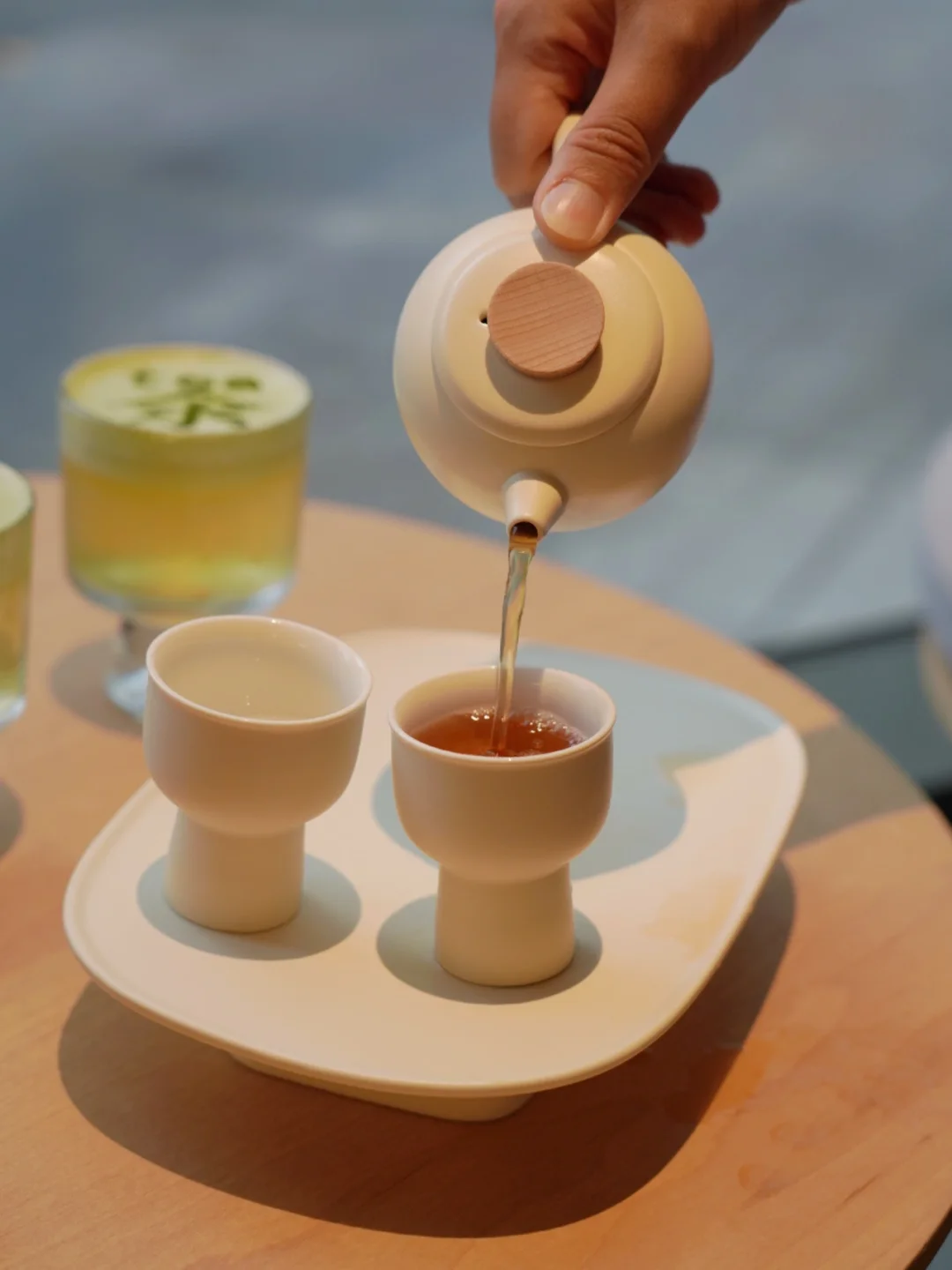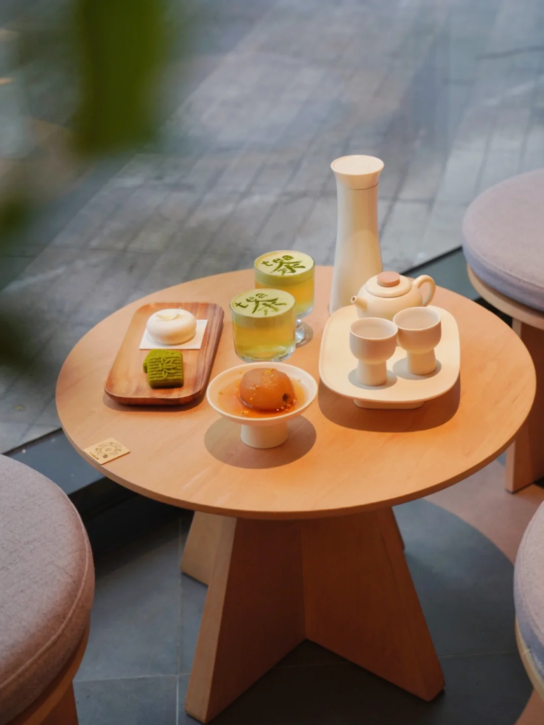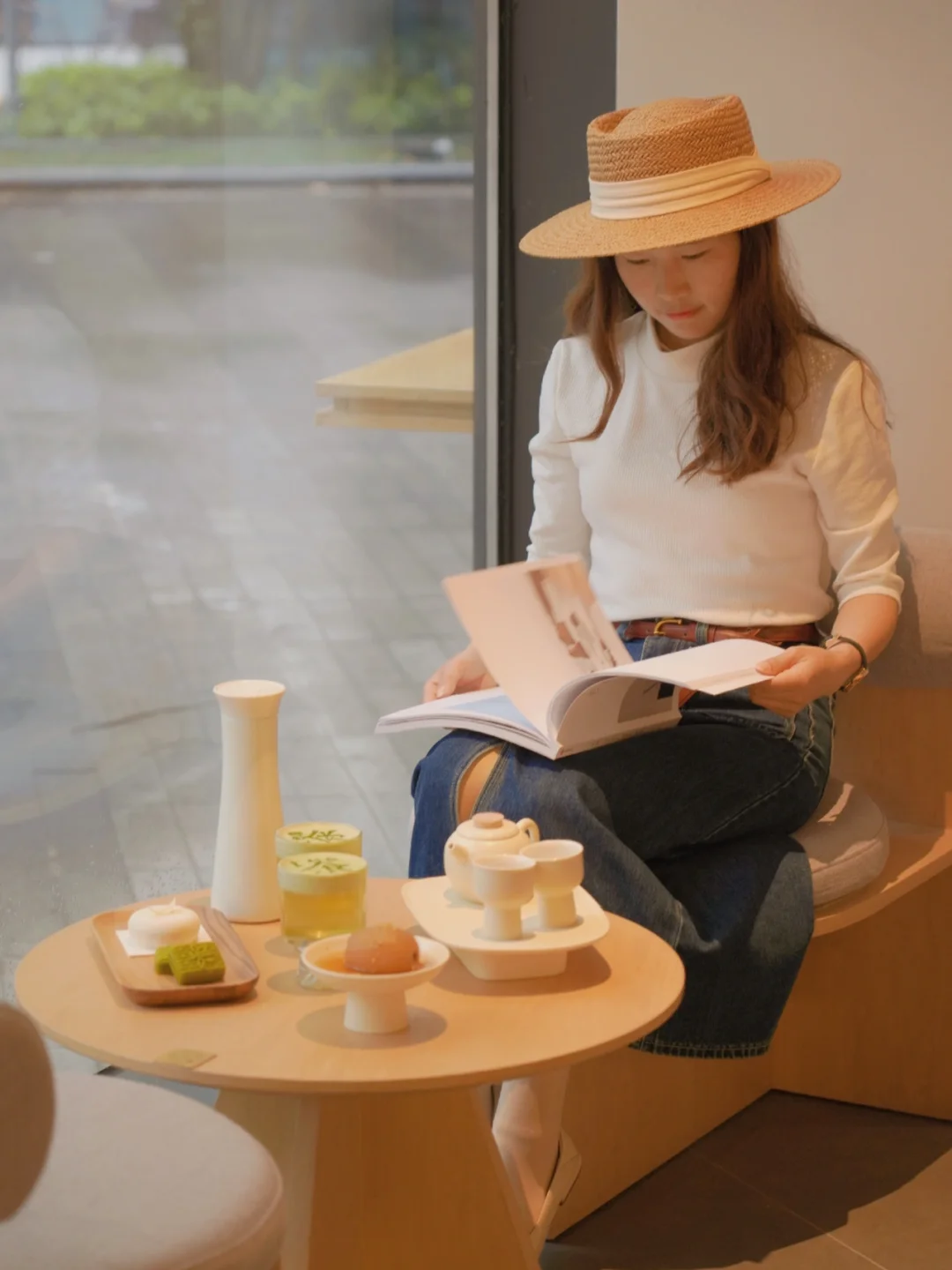 和朋友约着见面,来饮一杯春色🍵 寻了这家隐于写字楼里的中式茶馆 被绿树环绕的氛围,简直就是城市中小森林 弧形的空间设计巧妙,大大落地窗超惬意 真羡慕在附近上班的人,没事就可以过来放松下 看看书📖发发呆,在这里办公💻也颇为不错 挺有创 意的结合,点了杯应季的山河青色 龙井 茶底,棉云般的抹茶奶盖上挥洒了「茶」字 呷一口,满是来自新茶的绿意清新🍃 搭配竹子造型的绿豆糕,好看又好喝😋 在城市中找寻一隅幽静茶馆🍵 细品一壶春茶,偷 得“浮生半日闲” 🍵茶晓涧
