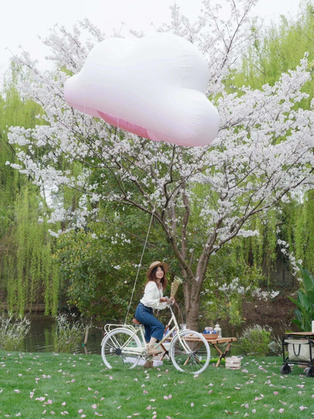 还有大片绿草坪,太适合在樱花树下露营野餐了