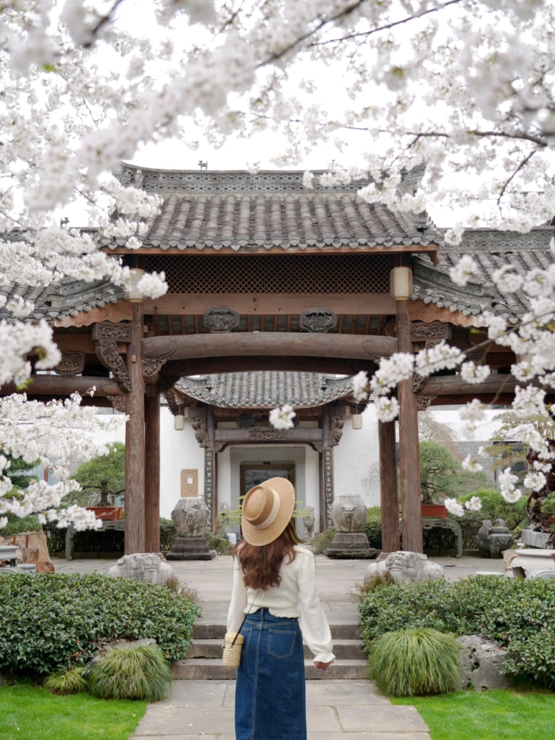 无意间走进了这个白樱盛开的中式庭院