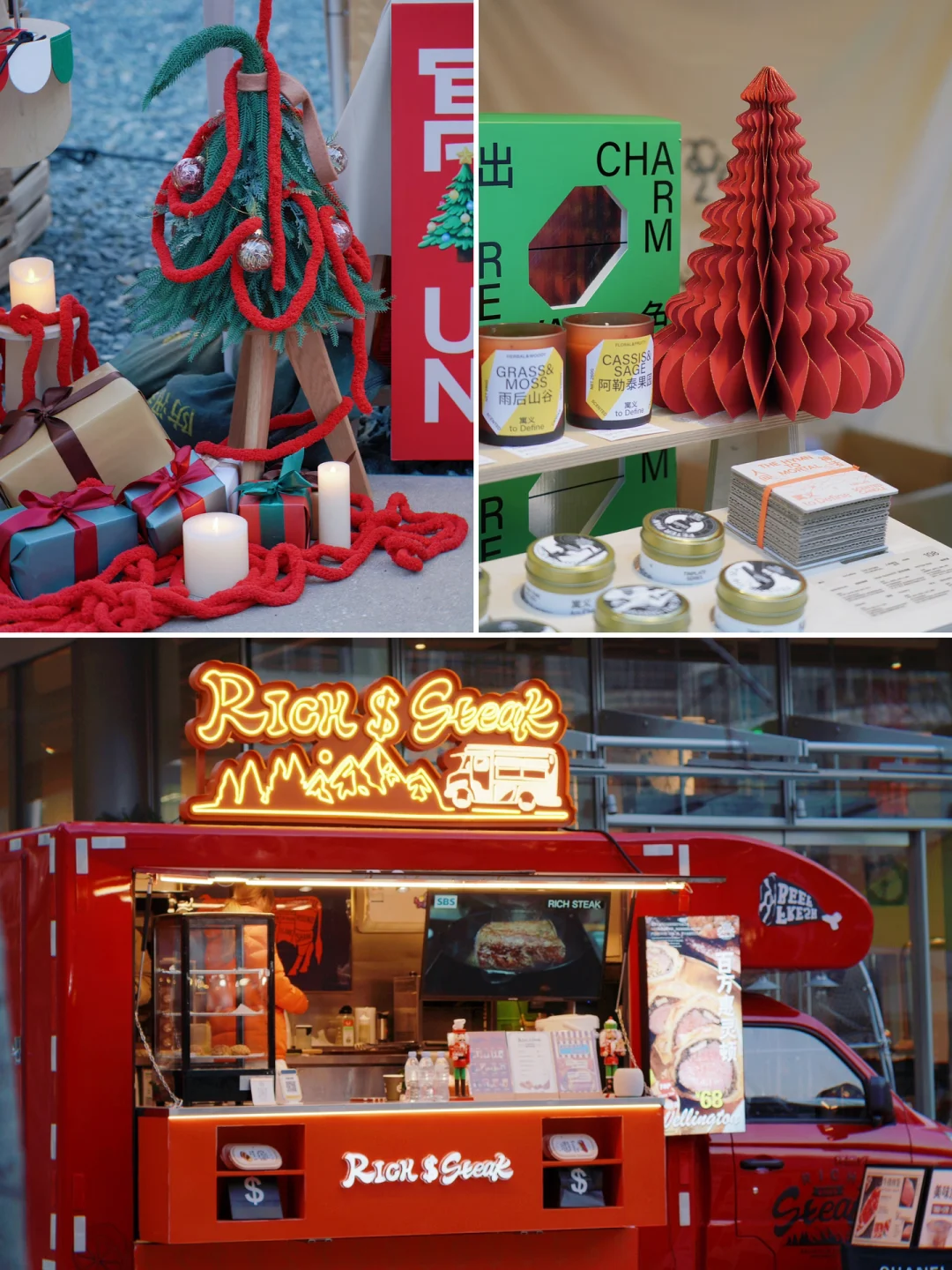 90+摊主集结现场,各种圣诞装饰玩具、展览音乐会、原创香氛、文创设计、快闪活动、小吃咖啡、农副产品等超级有氛围,好玩又好逛!
