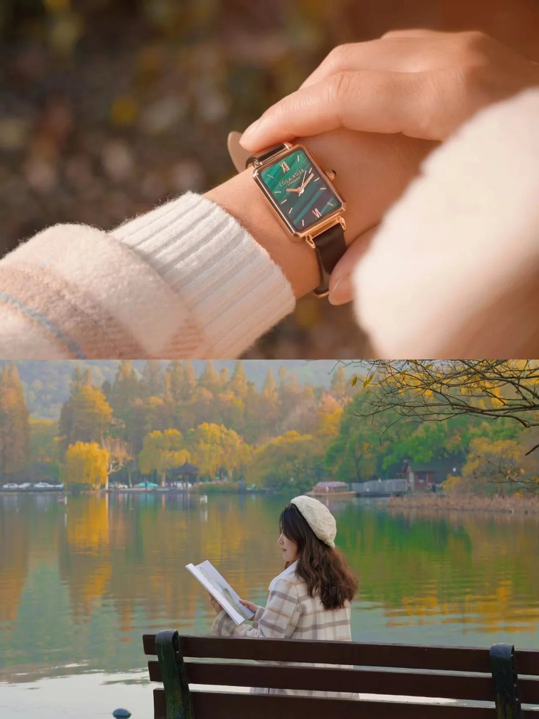 这里能看到雷峰塔以及对面南山路上色彩斑斓的秋,今天佩戴了Lola Rose罗拉玫瑰小绿表,复古绿超级喜欢[哇R]