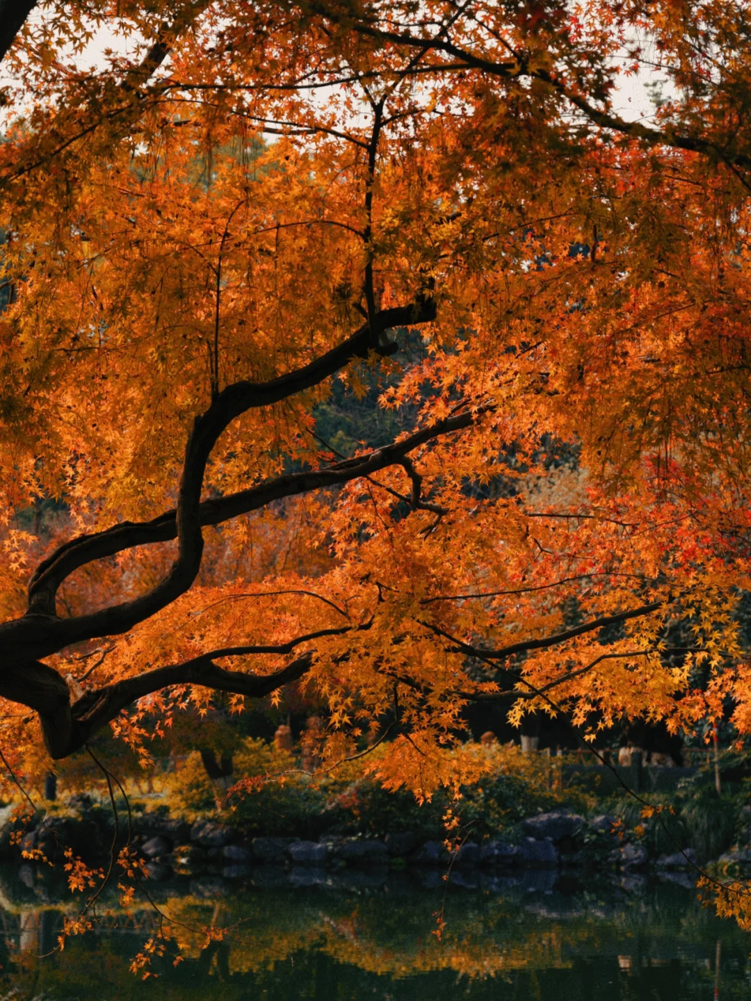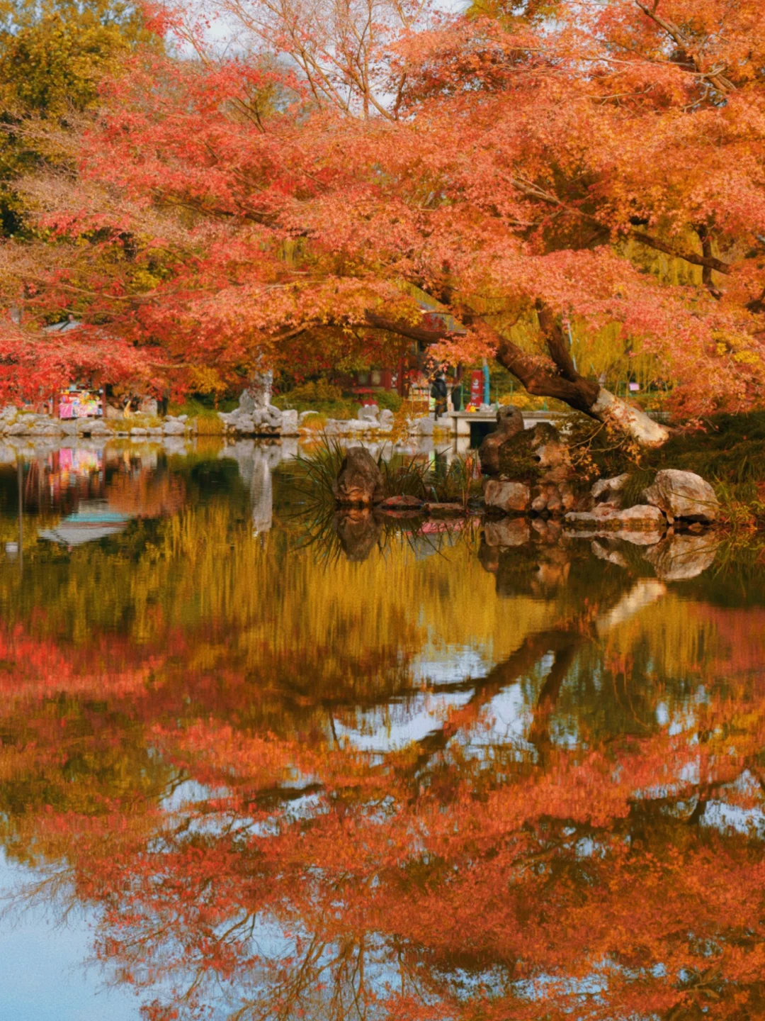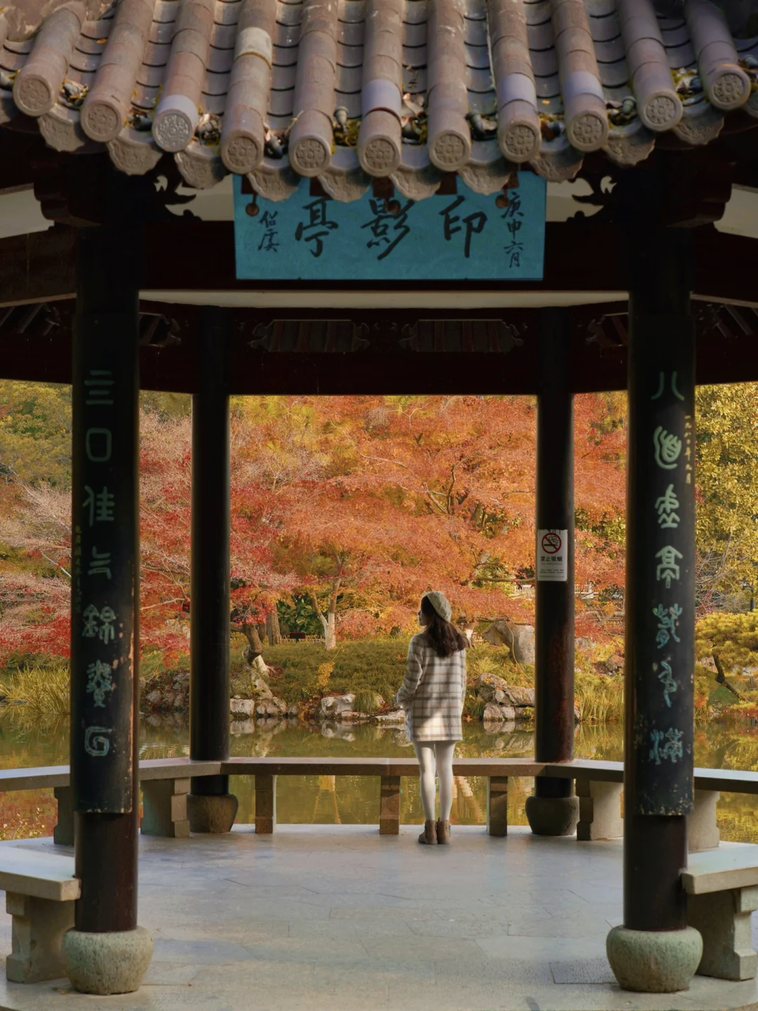 尤其喜欢“印影亭”后面的几株红枫🍁