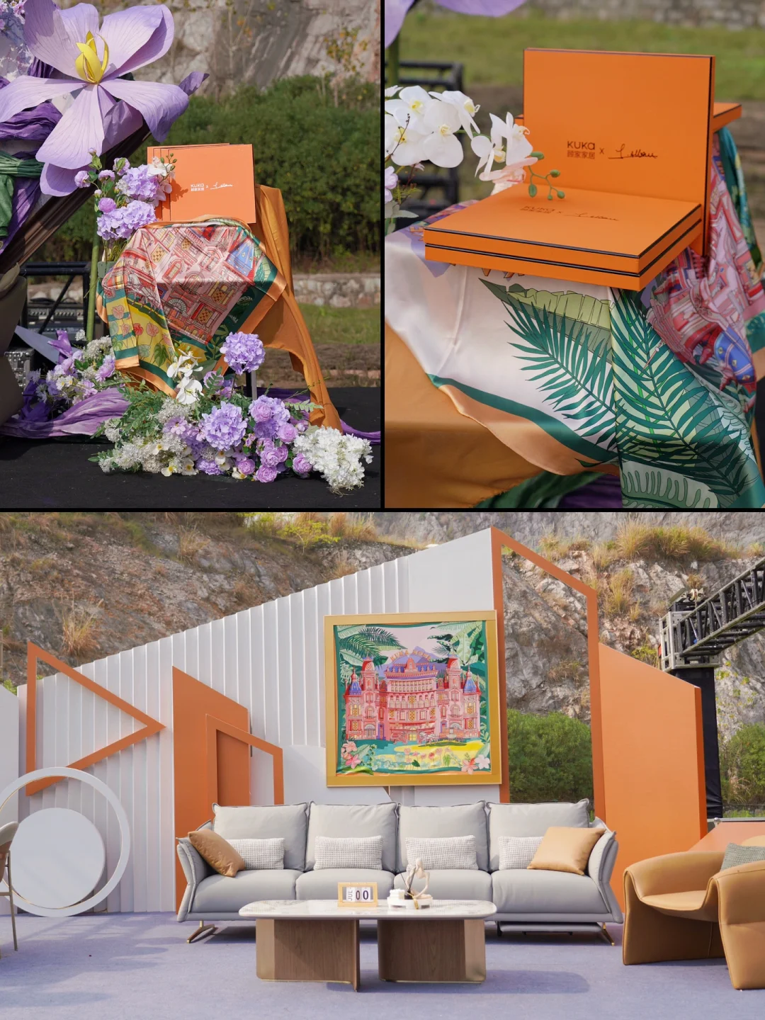 展台很契合这次的发布会主题“舞”,现场体验了9615舞沙发,一款意式轻奢的皮质沙发,皮质细软是哑光的,坐上去软乎乎的,超大的座深,大腿被舒服的托住,就算想盘腿坐也可以,整体造型一点也不笨重的原因可能和这个沙发脚有很大的关系,感觉像舞蹈演员的脚步一样轻盈~说实话心动了[哇R],以后装修我要多去KUKA看看!还有限量礼盒丝巾,真的巨好看~许愿今年沙发的时候可以拥有!!