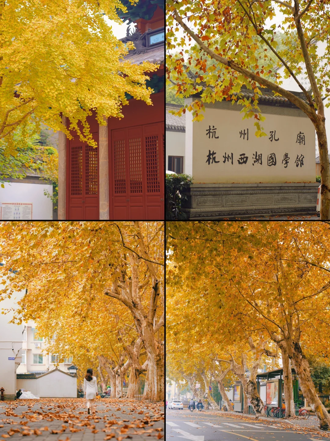 还留下了一个兴盛中的孔庙,原为南宋临安府学所在地,其旧址上还诞生了西湖国学馆,宋学文化也就是从这走向持续传承,杭州孔庙(碑林),可以说是杭州坠冷门的寺庙之一了!有着明清风格的屋檐,以及仿宋的门扇,每到深秋,金灿灿的银杏和红墙黛瓦相得益彰,很适合拍摄氛围感古风写真📷,门票:0元
