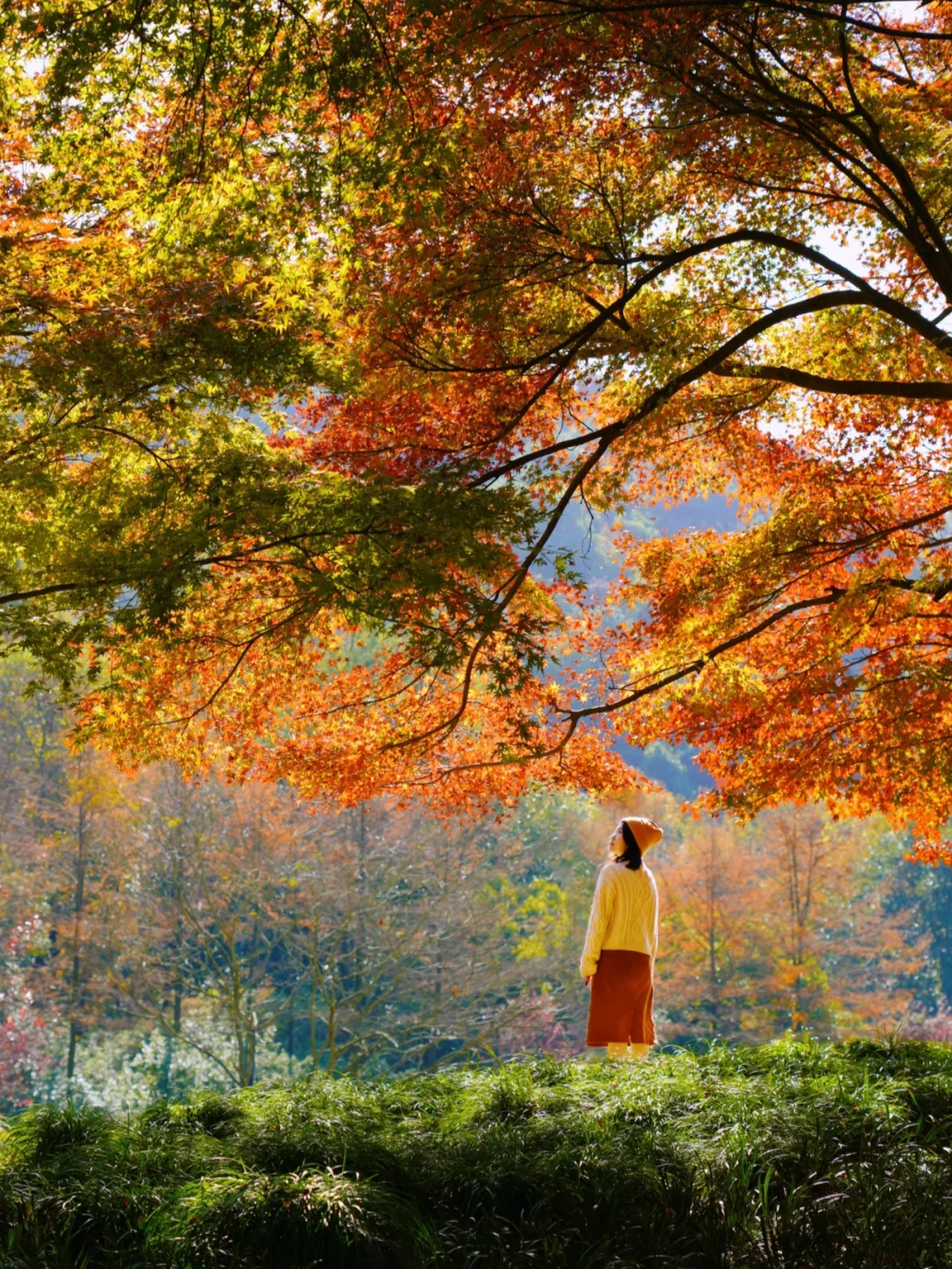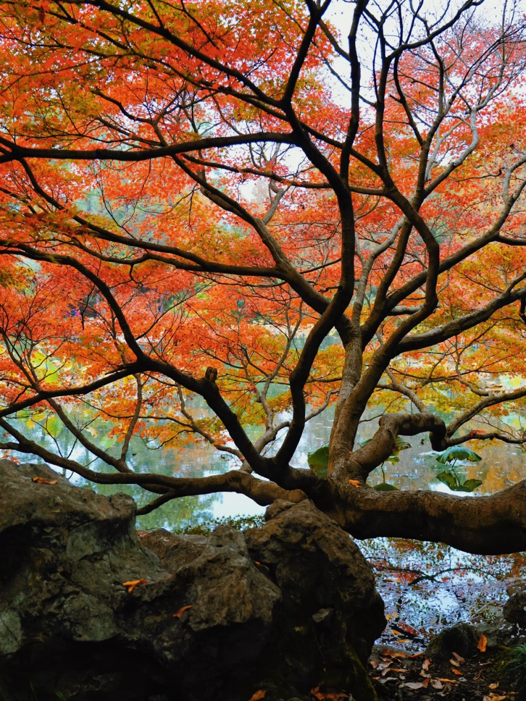 杭州赏枫NO.1,最具江南园林韵味,红色的枫叶🍁,映衬着古朴的亭子,禅意十足,丝毫不输京都!