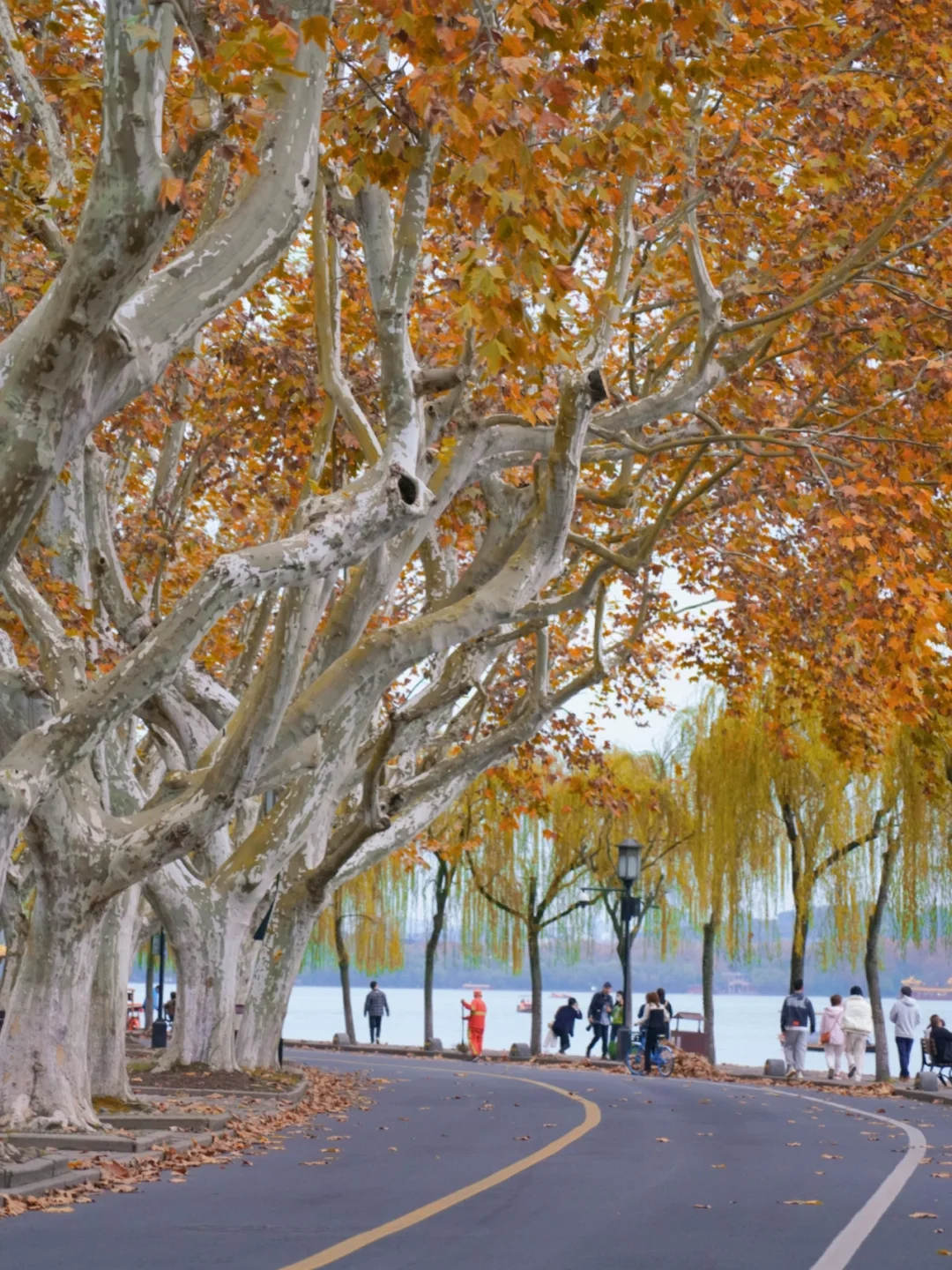 ❶秋日北山街,沿湖的一弯梧桐岸悄悄变黄了🍁,是最美也是最有文化气息的一条街;