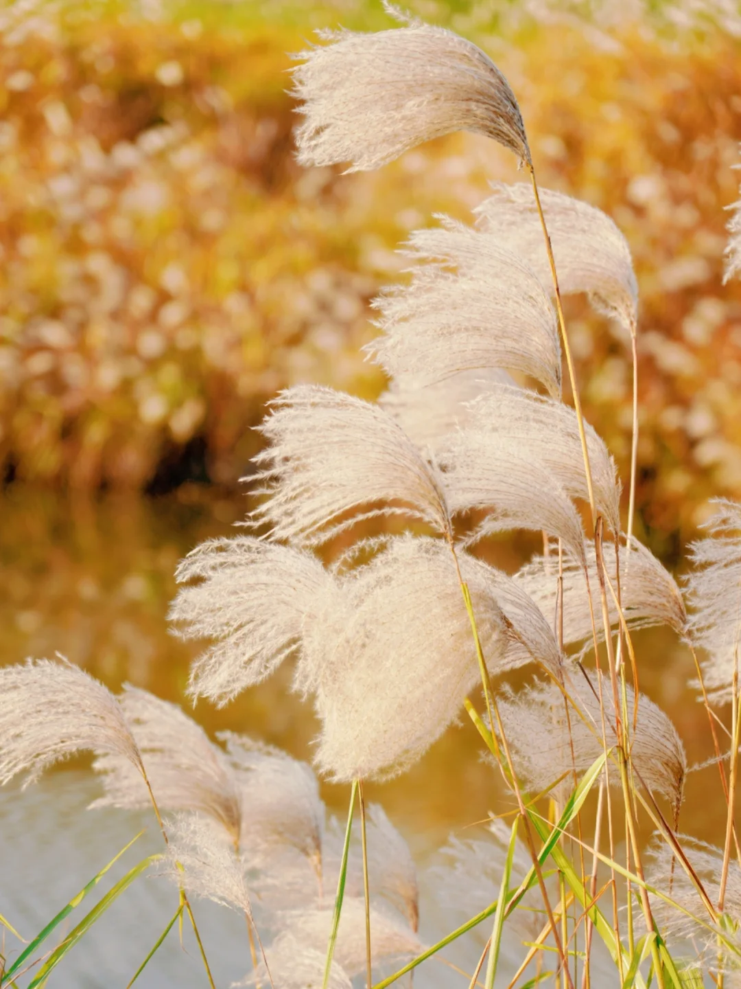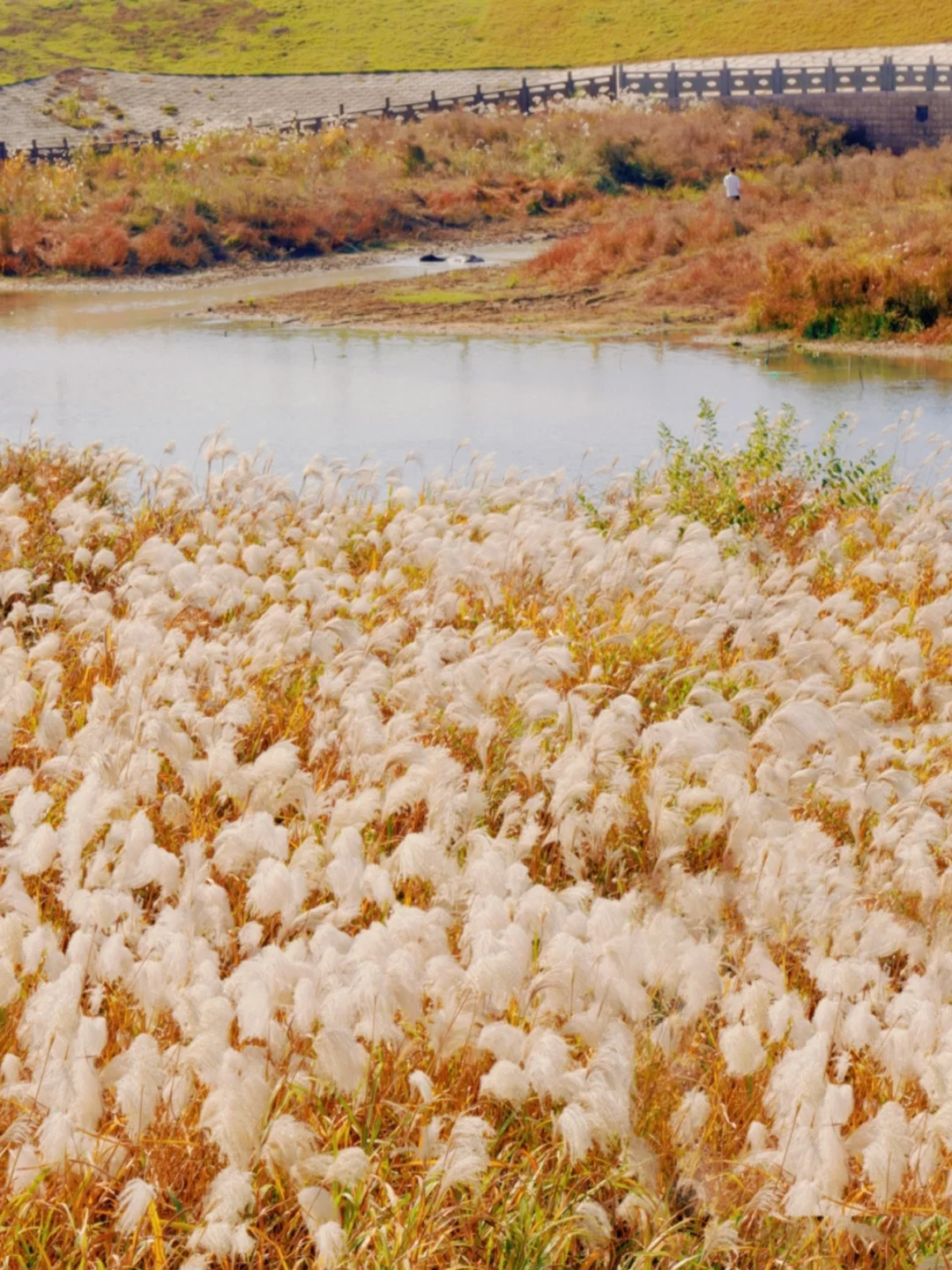 目前有大片芦花白、蓼红花和稻田,秋意正浓