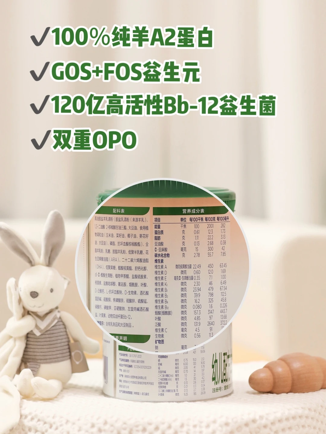 我还专门了解过诺优羊的配方,它是100%纯羊A2蛋白+双重OPO+双益合力的组合❗这硬核配方真的可以秒杀同类羊奶粉