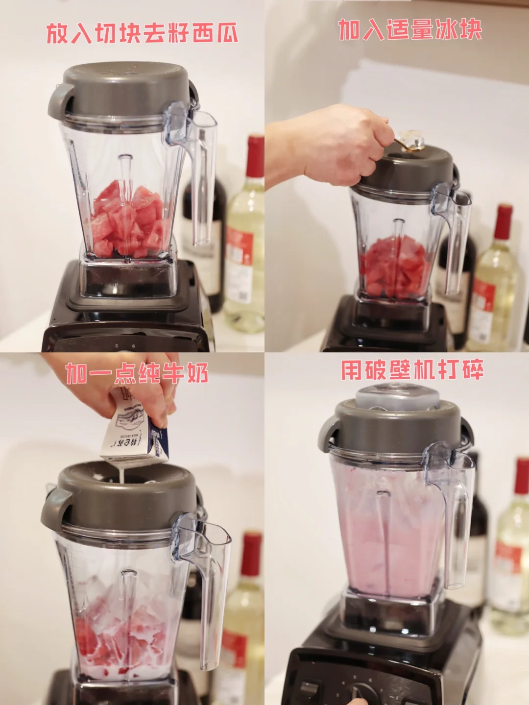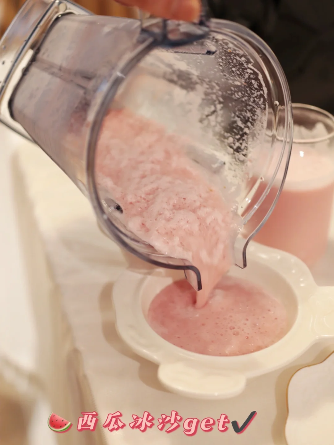 当然,这里还得点👍🏻用它做沙冰,把冰块放进去,它可以把冰块打的非常碎,细腻的沙冰搭配水果🍉,再配点牛奶🥛,爽歪歪~准备下次做冰淇淋试试,一般破壁机可做不了哦,哈哈😄
