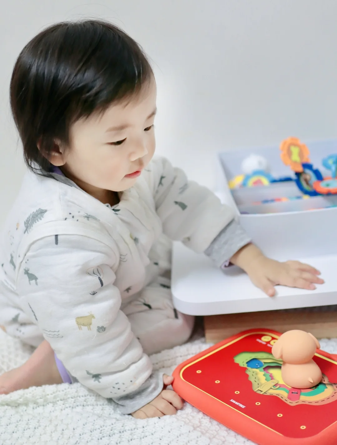 现在人都喜欢电子产品,小宝宝也不例外,可是看多了会伤眼的,我就给小家伙入手了这个无屏的ipad,可以启蒙宝宝的认知、语言、数学、🎵乐感。。。卡片丰富,内容适合0-8岁的孩子,操作也比较简单,孩子对什么感兴趣,把卡片放到平板的指定位置就好啦😄卡片可以当做教具,学习数字、认识动物颜色字母之类的,雪花片还可以穿插锻炼宝宝的动手能力。Cyndi每天都会花点时间玩一玩,她喜欢车类的卡片,当发出各种车鸣的声音,她也会跟着学