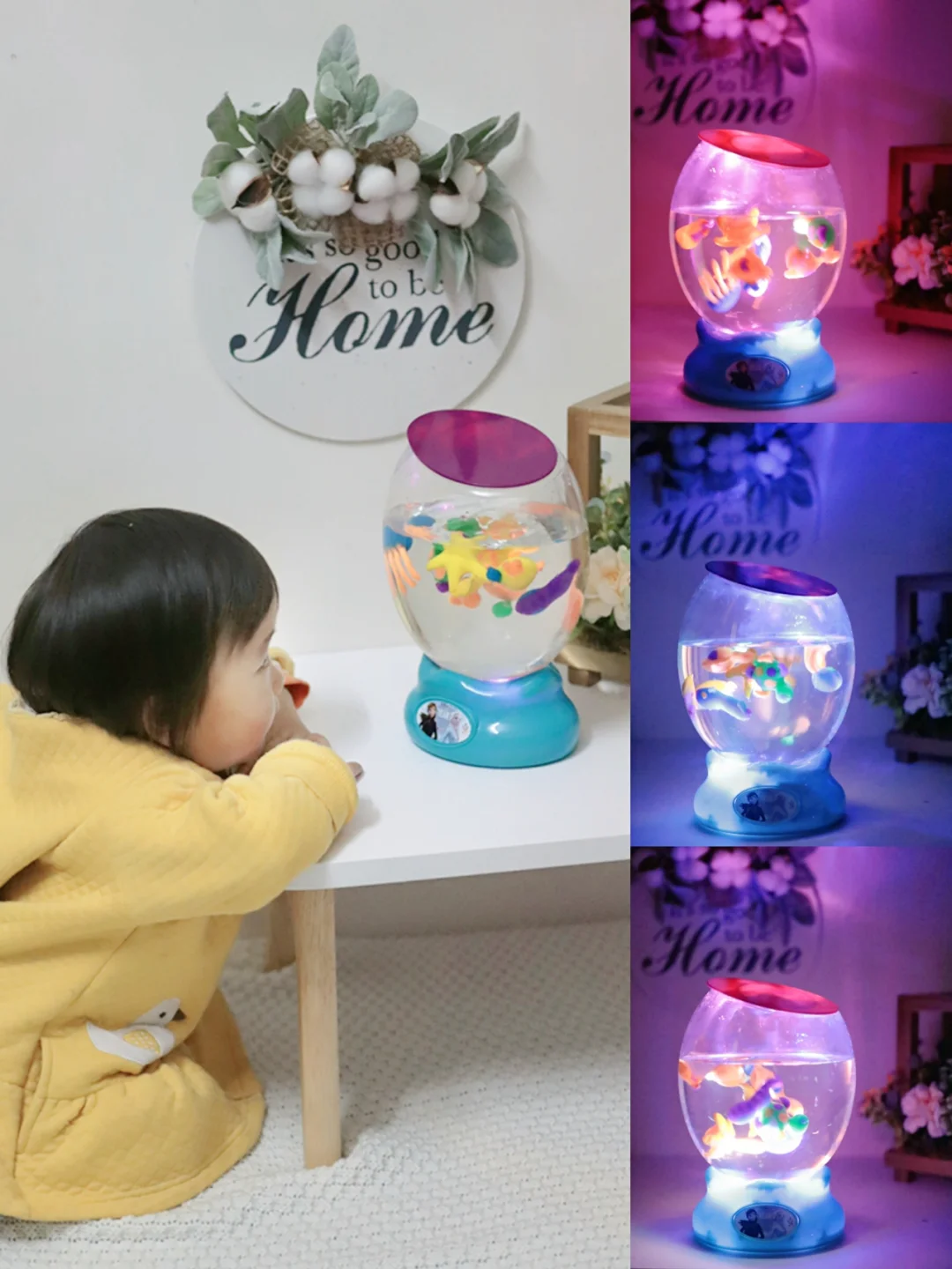 一直想带Cyndi去水族馆或者海底世界,但是这情况不敢带她去人多的地方,无意中看到这个玩具就给她入手了。大宝宝可以试着自己DIY各种海洋生物,材质安全,孩子可以放心玩耍,锻炼动手能力,海星、海马、鲸鱼🐳、海龟之类的都可以。然后放入小鱼缸,打开灯光和气泡,就可以带宝宝在家欣赏海底的小动物了~