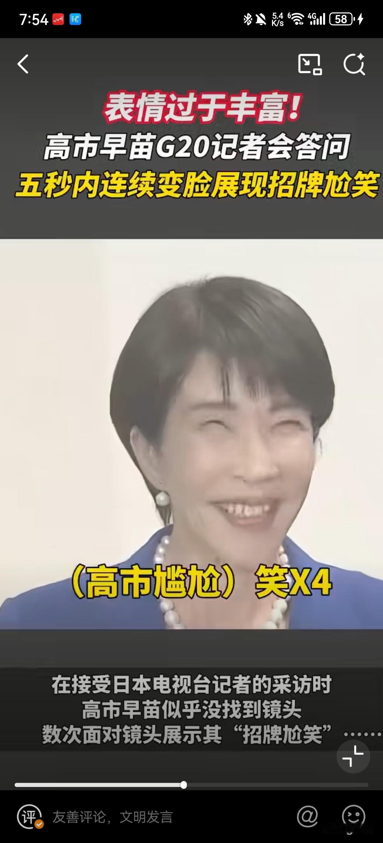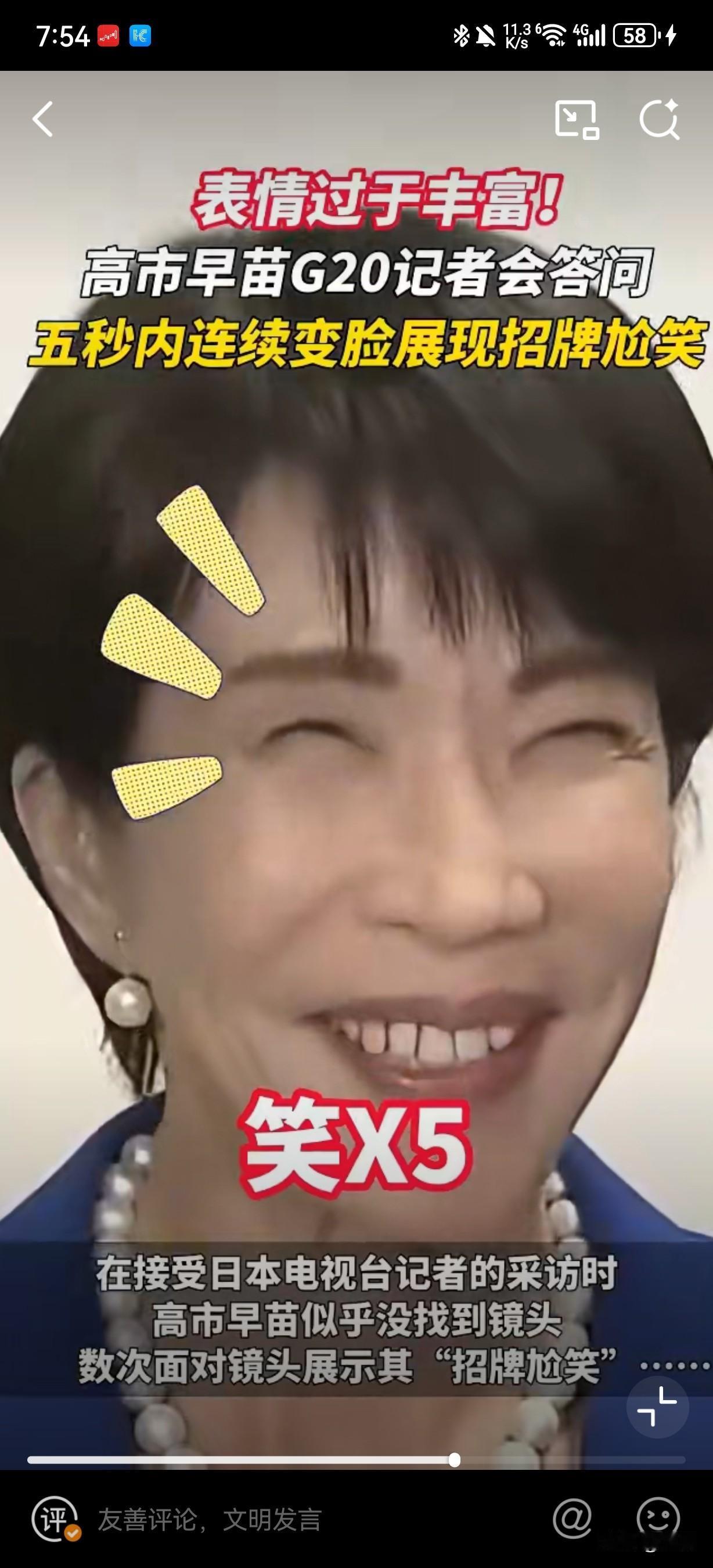 尬笑五连变…G20峰会落幕之际,日本首相高市早苗在会场外接受日本电视台记者采访时