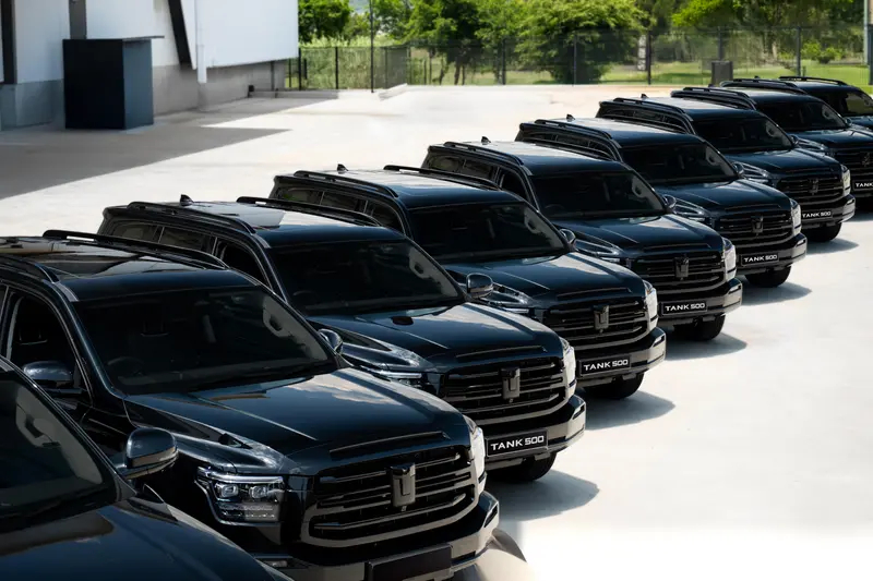 中国长城汽车的坦克500成为南非G20峰会指定用车,这一排排黑色巨兽,惊艳闪耀,