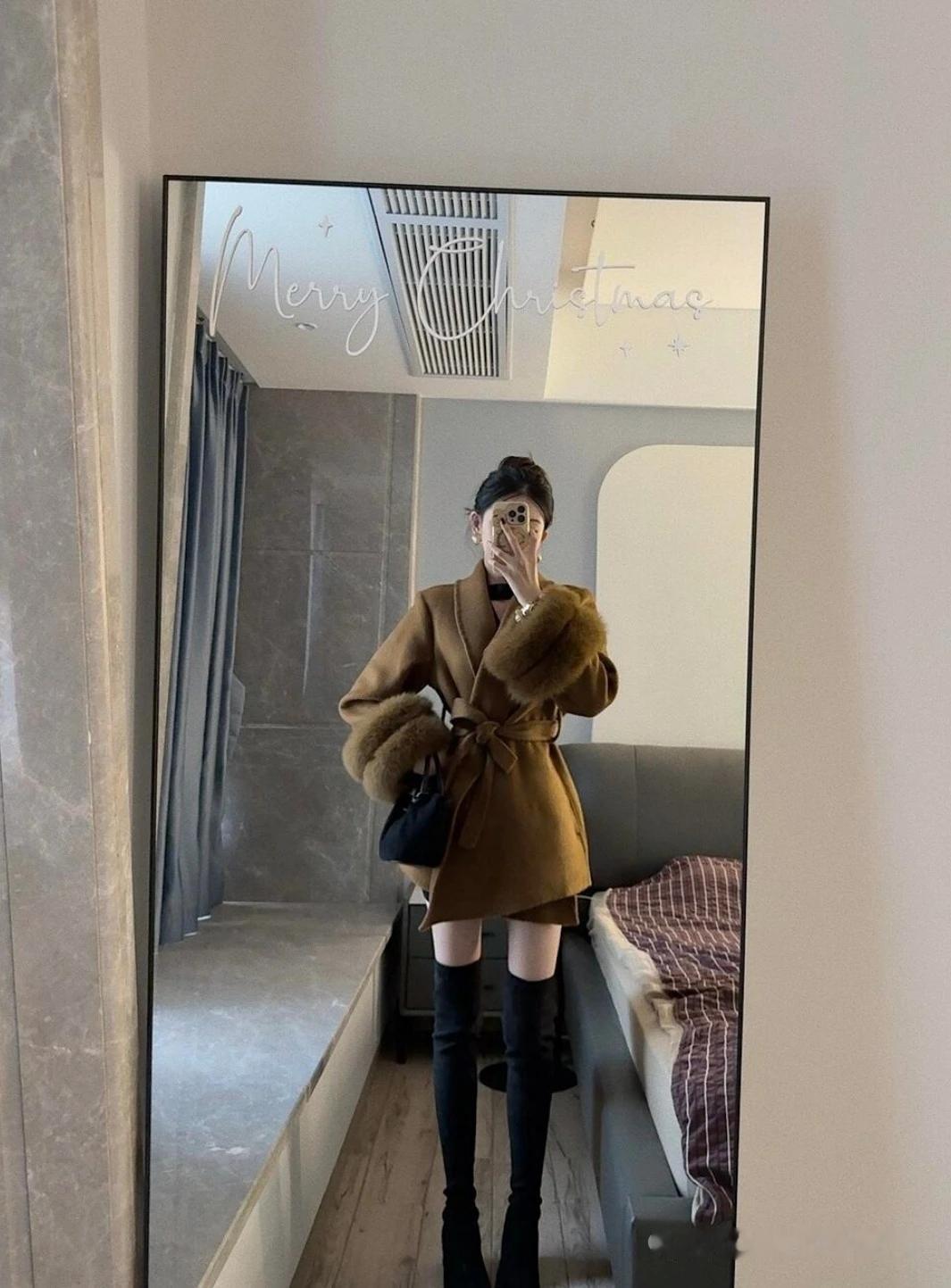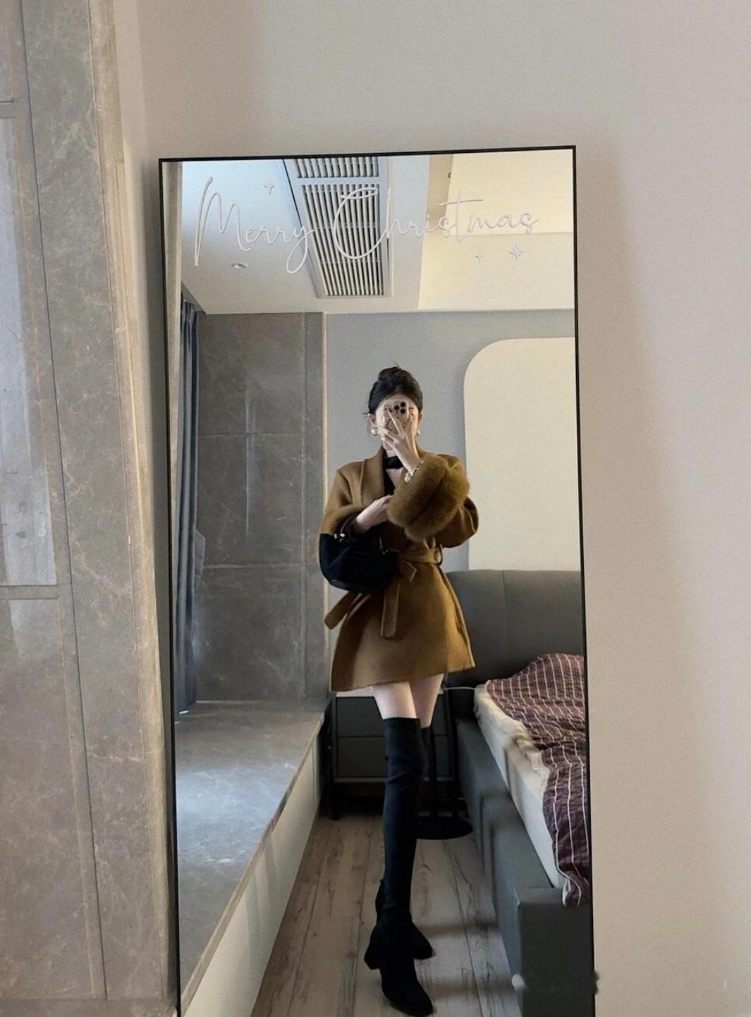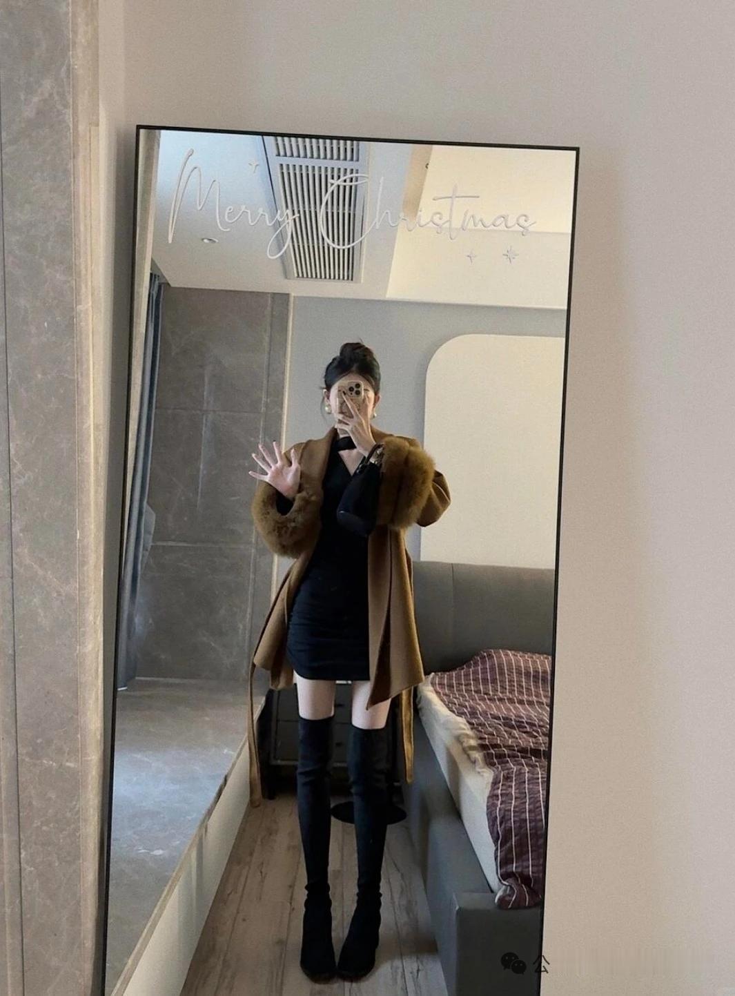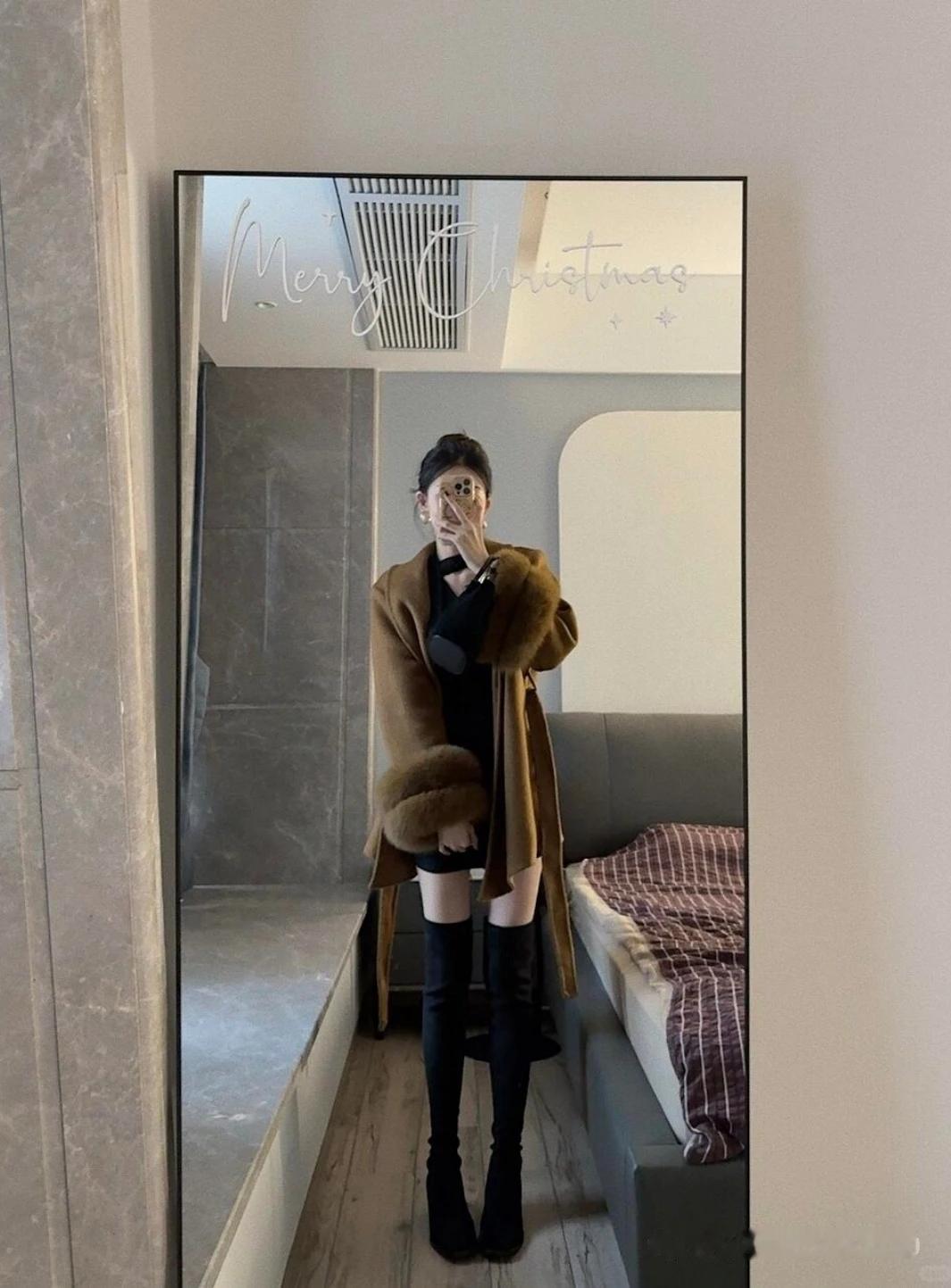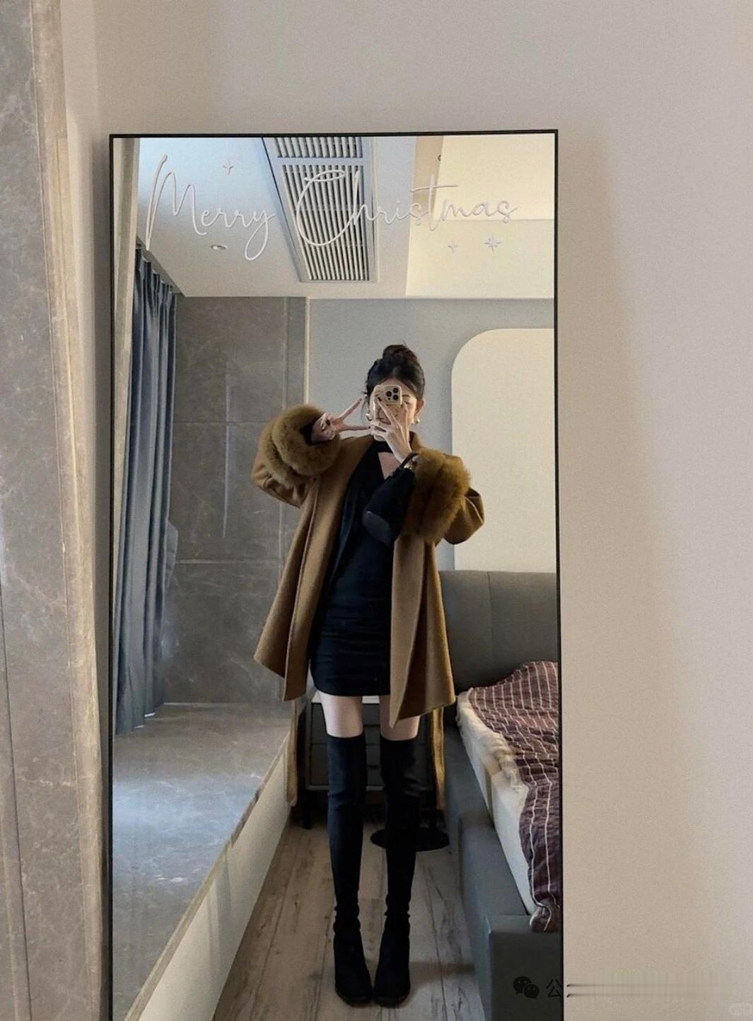 棕色大衣搭配黑色高筒靴,温暖又时尚!🌟✨