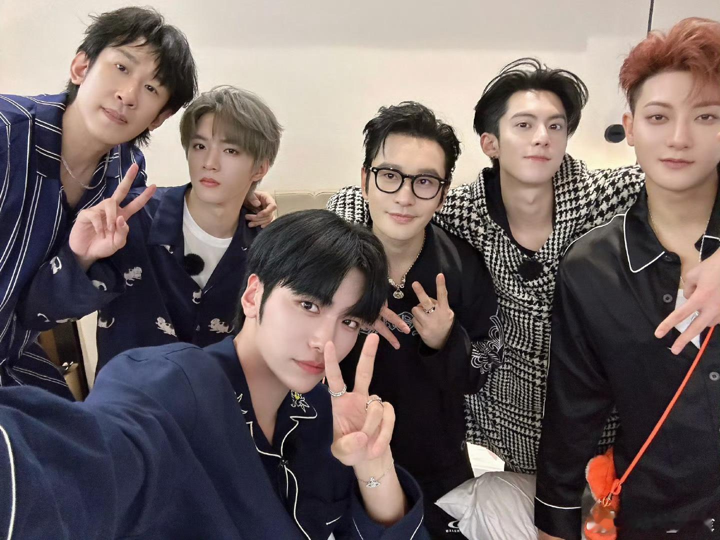 哇哇哇,黄晓明成团第一张合照🈶宇宙爆闪团睡衣自拍来喽
