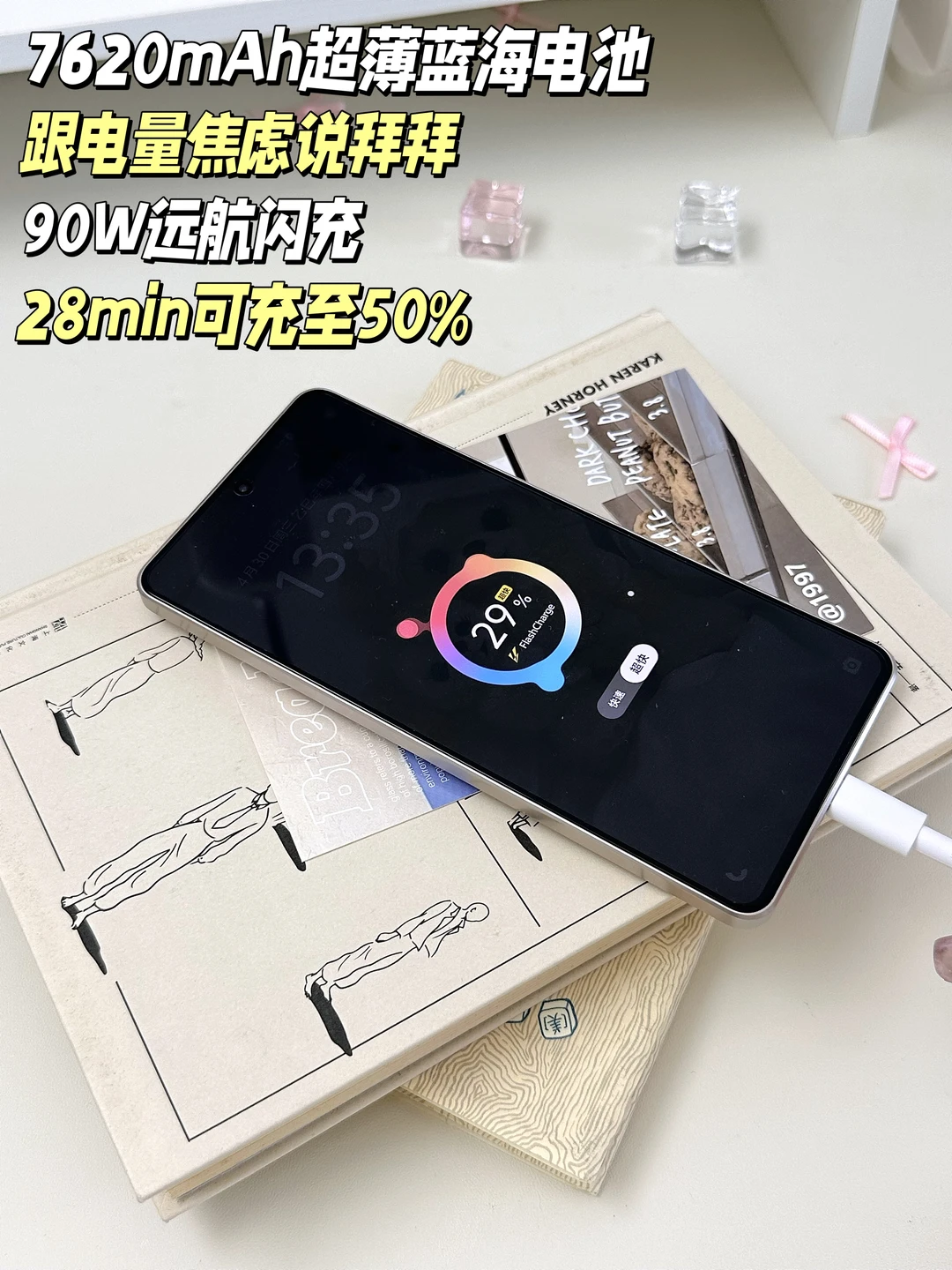 搭配上90W远航闪充,早上洗漱充半小时就能快速回血一半!