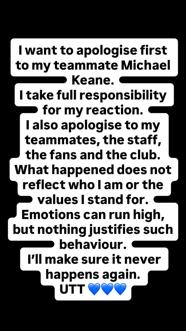 虎扑11月24日讯本轮英超,曼联0-1埃弗顿,盖耶染红离场。赛后他更新社媒致歉: