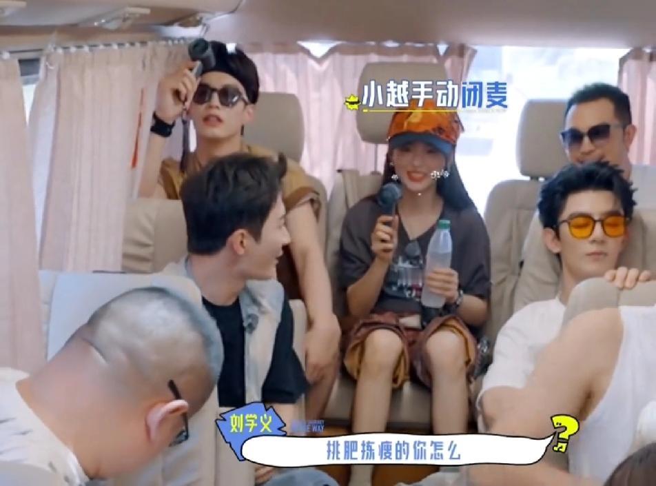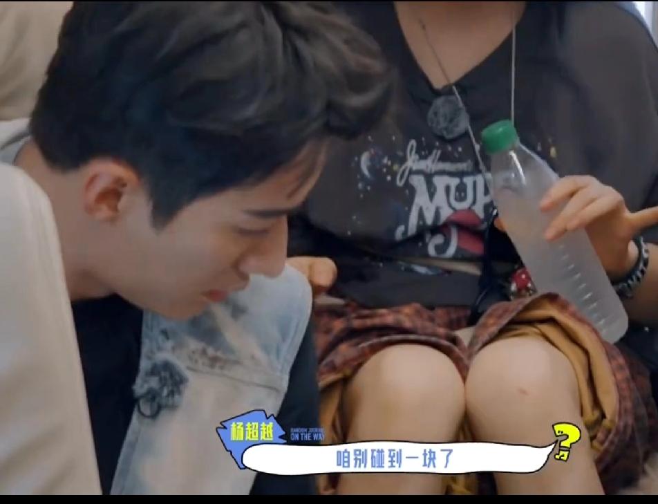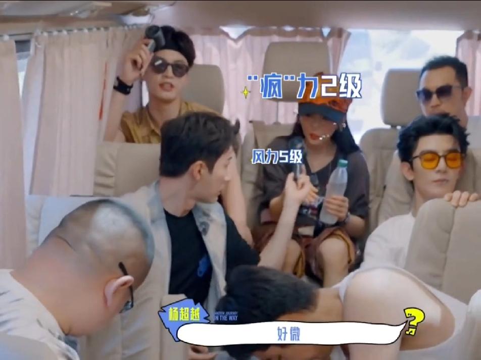一车都是男的,把唯一一个女孩杨超越放在最不舒服的位置,难怪杨超越各种牢骚,各种抱怨,两边的人都劈着个大腿,只给杨超越留那么点地方,旁边的何与出汗又像下雨一样,给超越妹妹烦躁的够呛,刘学义真好人,其他人都不理会杨超越的抱怨,睡觉的睡觉,吹风的吹风,只有刘学义把手里的小风扇给了超越,这么热的情况下,刘学义能把手里的风扇让出来,人真的不错!杨超越