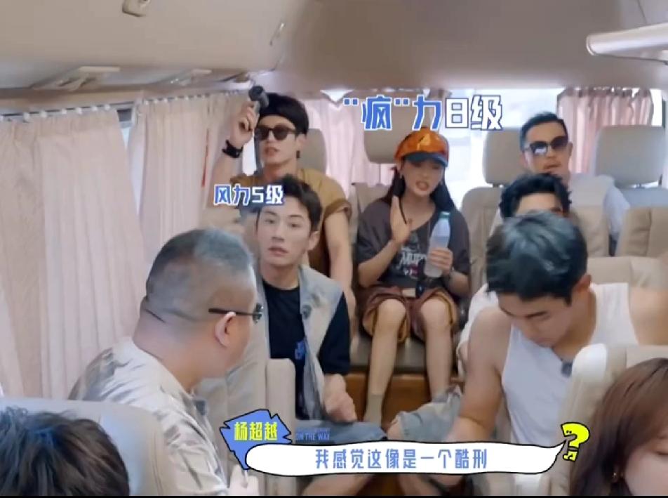 一车都是男的,把唯一一个女孩杨超越放在最不舒服的位置,难怪杨超越各种牢骚,各种抱