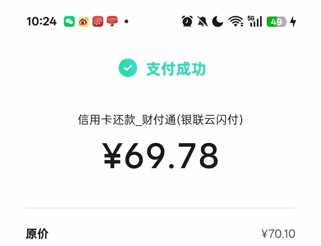 有人用微信里的云闪付小程序还信用卡,70块账单被4块多红包直接啃掉,再抽一把返了3毛2,截图一发,全网跟着抄作业。 我昨晚也试,步骤真绕:得先绑银联卡,再关微信默认通道,把券包领完才出现抽奖入口,一圈点下来汗比省下的钱多。 有人晒零手续费加十块券,我这边毛都没见,客服一句“区域测试”把我打回原地。 半夜刷帖,看到有人返 88欢呼,有人嫌几分钱鸡肋,屏幕里外都是打工人的精打细算。 省几毛是小事,把平台藏着掖着的优惠翻出来,才是普通人生活的快乐。 几分几毛也是钱,弯腰捡得起。 平台别把优惠玩成躲猫猫,让用户猜,不如敞亮摆出来,省钱的热闹谁不爱凑。