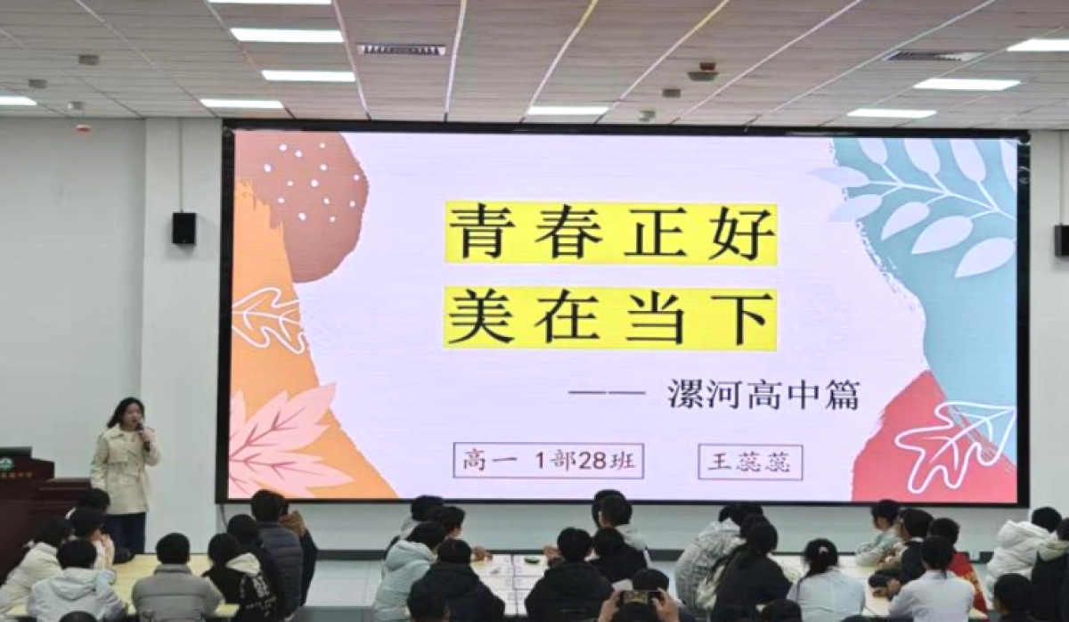 王蕊蕊老师以一封来自2028年漯河高中校友会的邀请函为引,巧妙开启了一场“发现校园之美,感悟青春之美”的探索之旅。首先,她展示了学生们自己画的漯高美景,从北大门橘黄的落日余晖到卫生区里的小花坛,从每一处景致分享青春的独家记忆。随后,班会更聚焦“人美”通过情景短剧《雨夜暖光》让学生们体悟教师之爱、珍视互助友爱的同窗之情。在小组讨论中,学生踊跃分享被忽略的校园美好,最后寄语引导学生珍惜当下、珍视彼此,在漯高校园里共同书写璀璨的青春篇章。