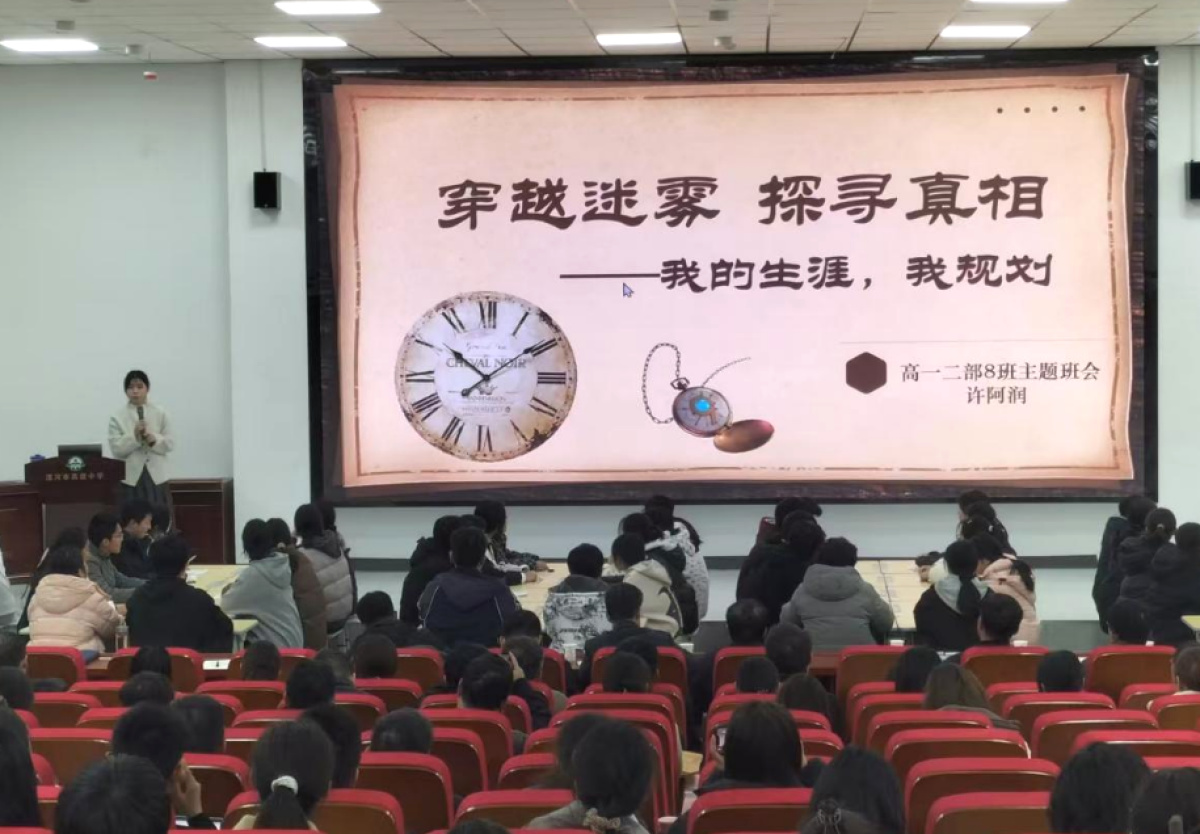 许阿润老师以“穿越迷雾探寻真相——我的生涯,我规划”为主题,开展了一场创意生动的主题班会。她以“人生侦探破解2035年求救信号”为线索,通过四位学长学姐因缺乏规划陷入人生困境的案例,引发学生对生涯选择的深度思考。班会揭晓了“兴趣+能力+价值观+勇气”的人生选择核心密码,引导学生通过绘制“人生地图”,明确自身优势、职业向往与行动路径,帮助学生在选科关键期树立主动规划意识,为未来发展筑牢根基。