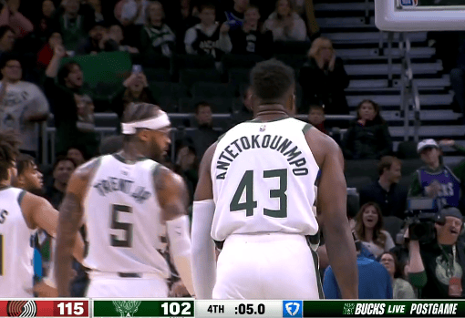 虎扑11月25日讯NBA常规赛,开拓者对阵雄鹿的比赛正在进行中。