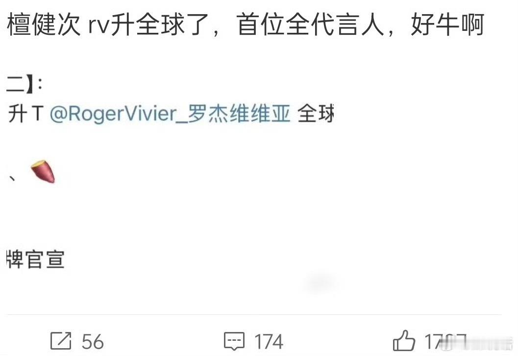 檀健次的RV首个全球代言人被辛芷蕾截胡了,半场开香槟有点尴尬