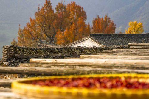 冬初仍能看到尾声晒秋,农作物色彩与枫叶交叠,让篁岭呈现“自然景观+在地生活”双重体验。