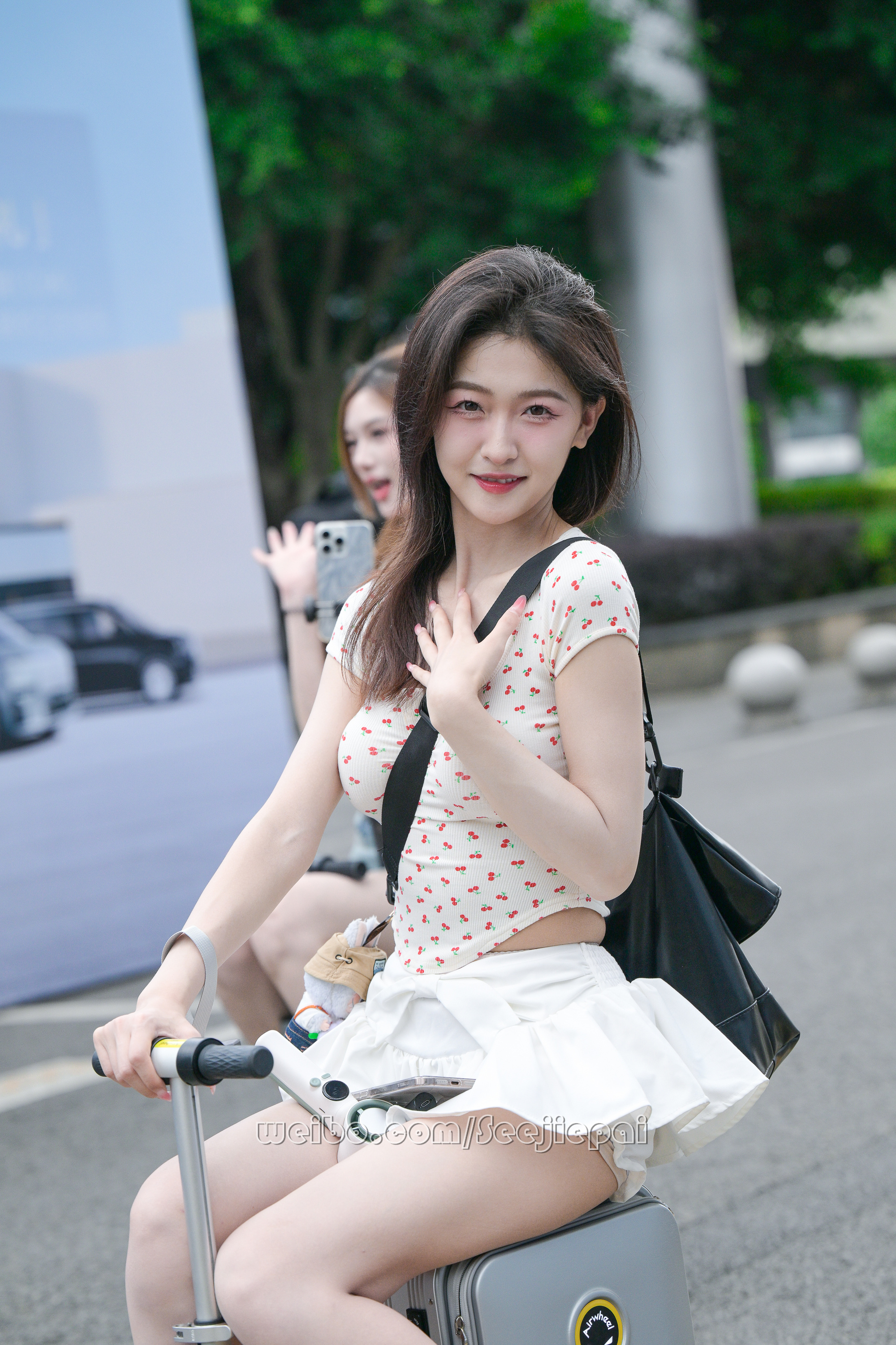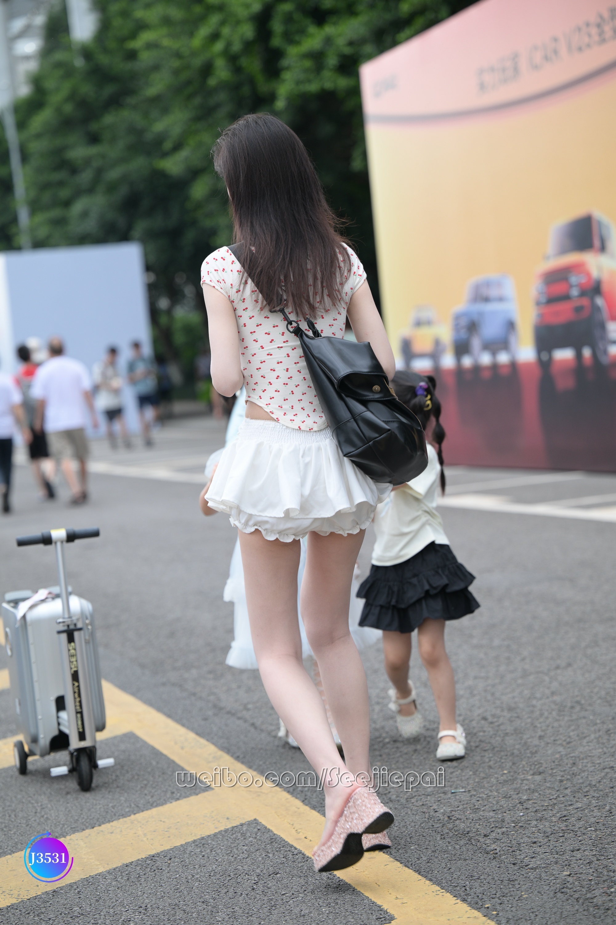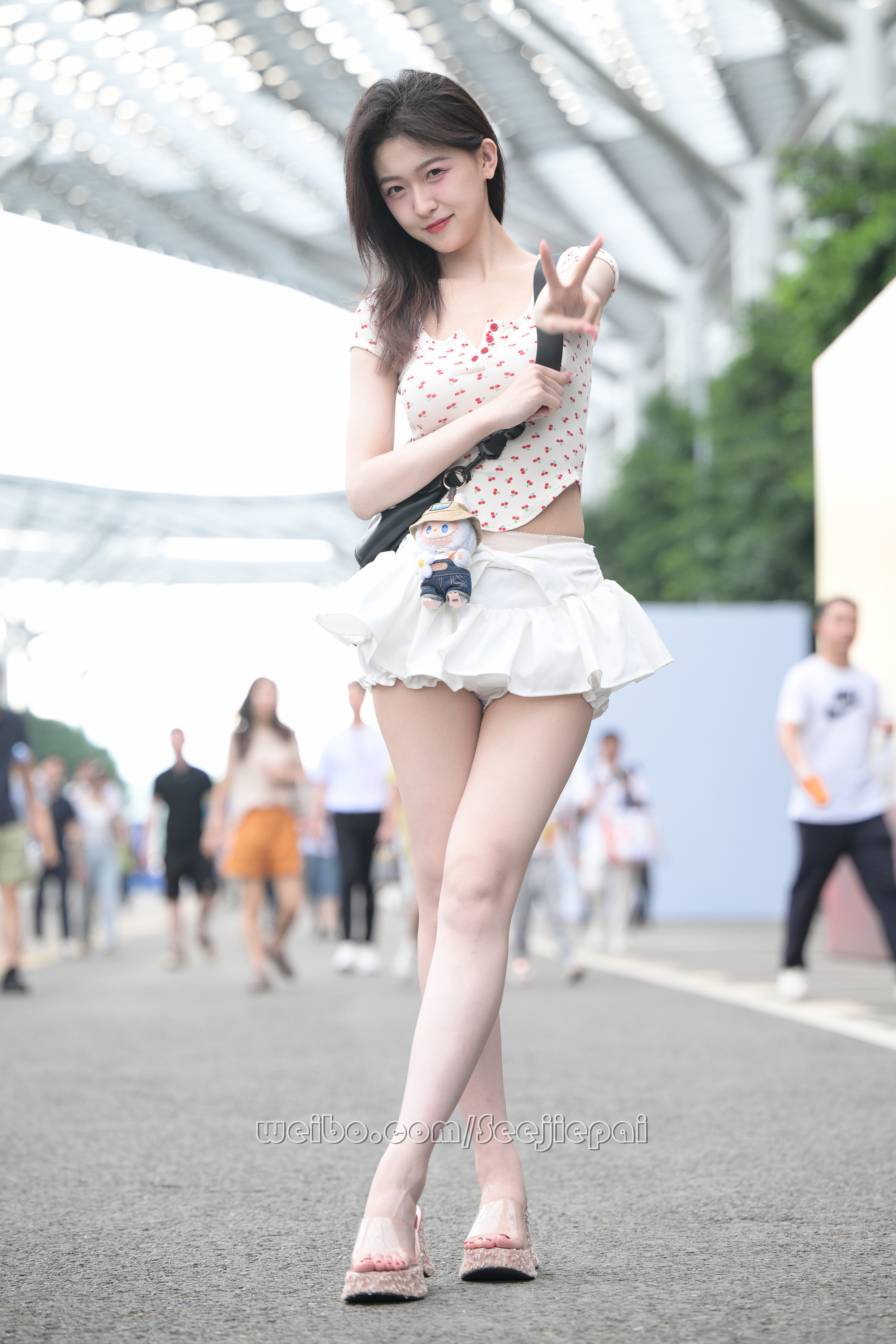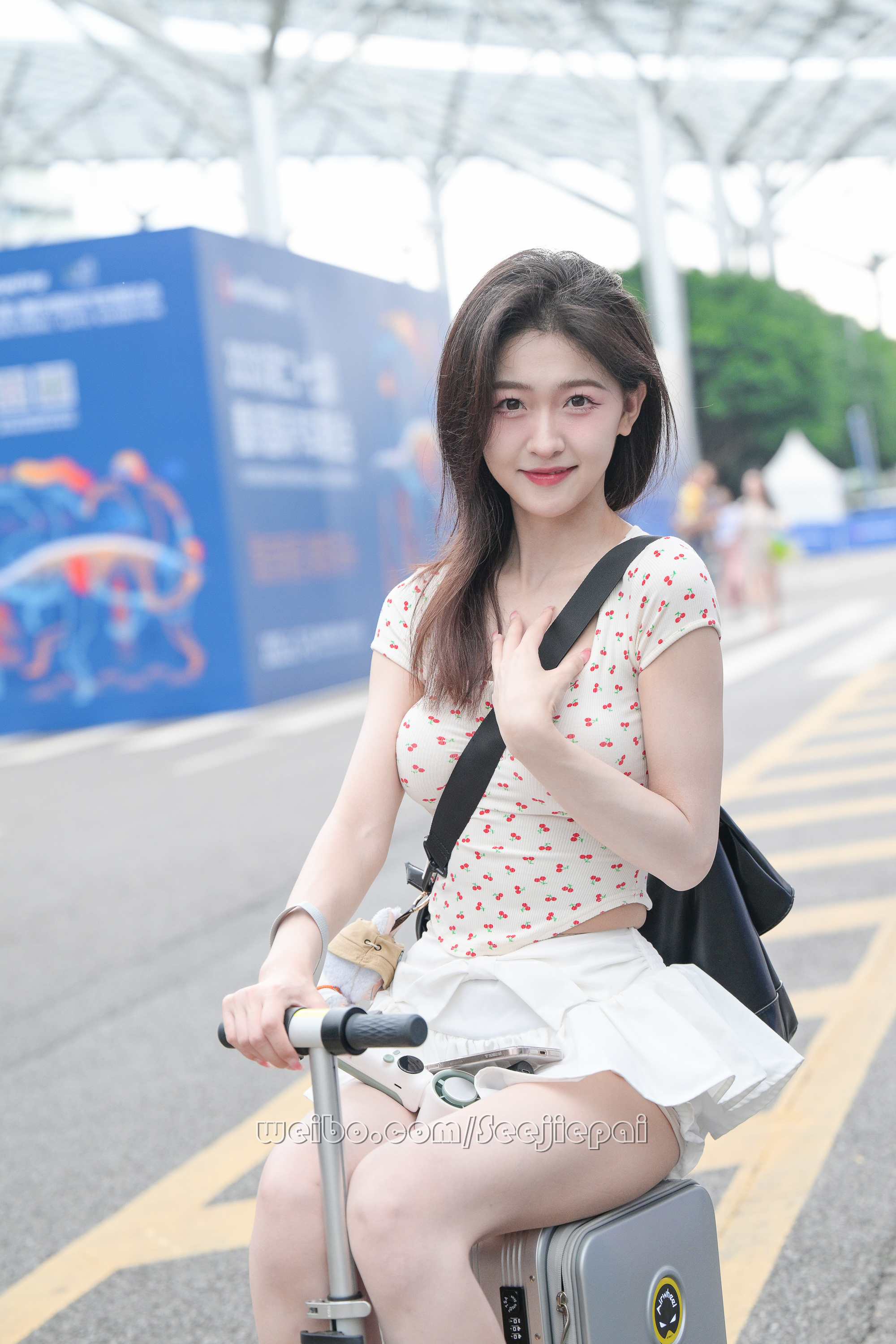 清新夏日穿搭,绿意盎然背景,少女感十足!街拍高清美女
