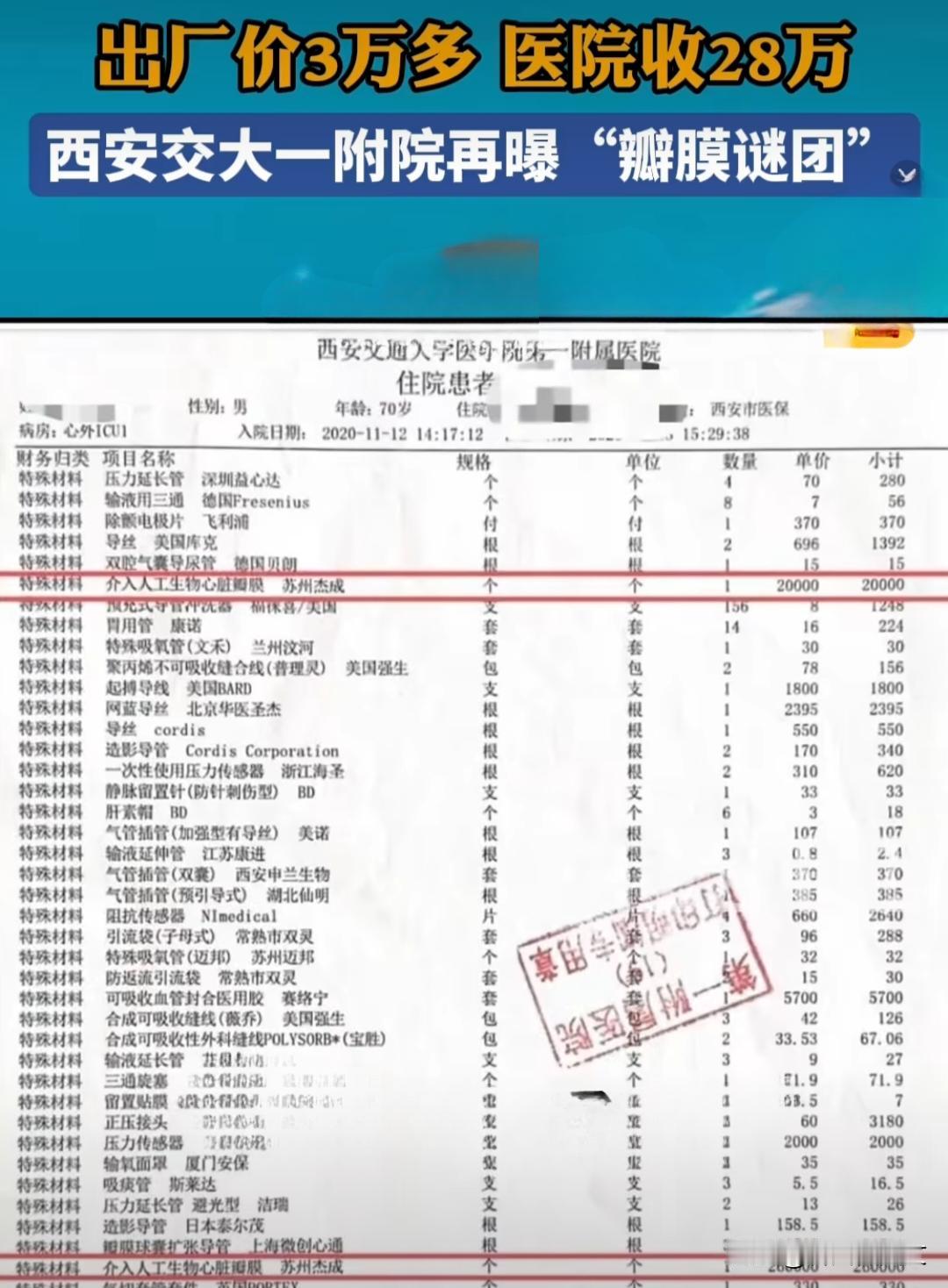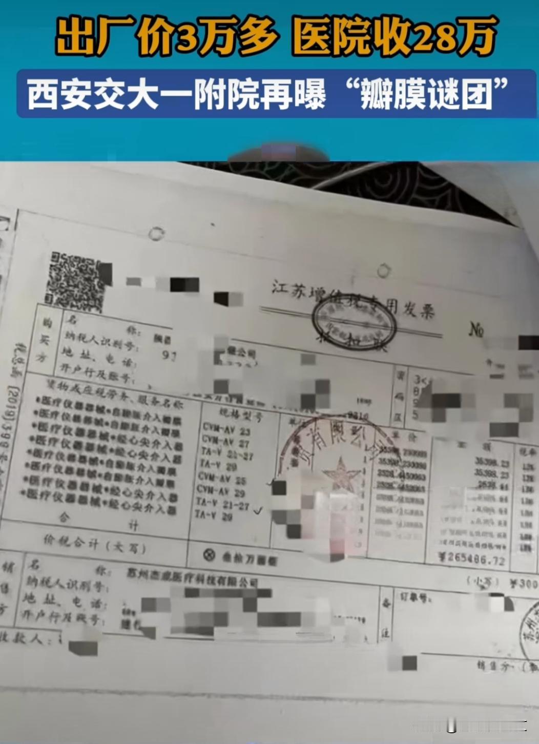 【西安交大附属医院被曝高价销售瓣膜,患者家属怒告医院】 近日,西安交通大学第一附属医院因一起高价销售医疗耗材事件引发广泛关注。据患者家属透露,医院将进价仅3万多元的瓣膜以28万元的高价卖给患者,差价高达近25万元。这一事件不仅让患者家属感到愤怒,也引发了公众对医疗收费透明度的质疑。 据悉,患者因心脏疾病需进行瓣膜置换手术,医院推荐使用某进口品牌瓣膜,并告知费用为28万元。然而,患者家属在后续调查中发现,该瓣膜的进价仅为3万多元,医院加价幅度惊人。家属认为,医院在未充分告知的情况下收取如此高昂的费用,涉嫌侵犯患者知情权和公平交易权,遂将医院告上法庭。 对此,西安交大第一附属医院回应称,医疗耗材的定价考虑了多方面因素,包括进口关税、物流成本、设备维护及医疗服务等,并非单纯以进价为基础。然而,这一解释并未平息公众的质疑。许多网友表示,医院应公开收费明细,确保医疗费用的透明化,避免患者因信息不对称而承担不必要的经济负担。 目前,案件正在进一步审理中。此事件再次将医疗收费问题推上风口浪尖,呼吁相关部门加强监管,规范医疗收费行为,保障患者的合法权益。 西安交大附属医院被告 高价医疗耗材 医疗收费透明度 患者维权心脏瓣膜手术