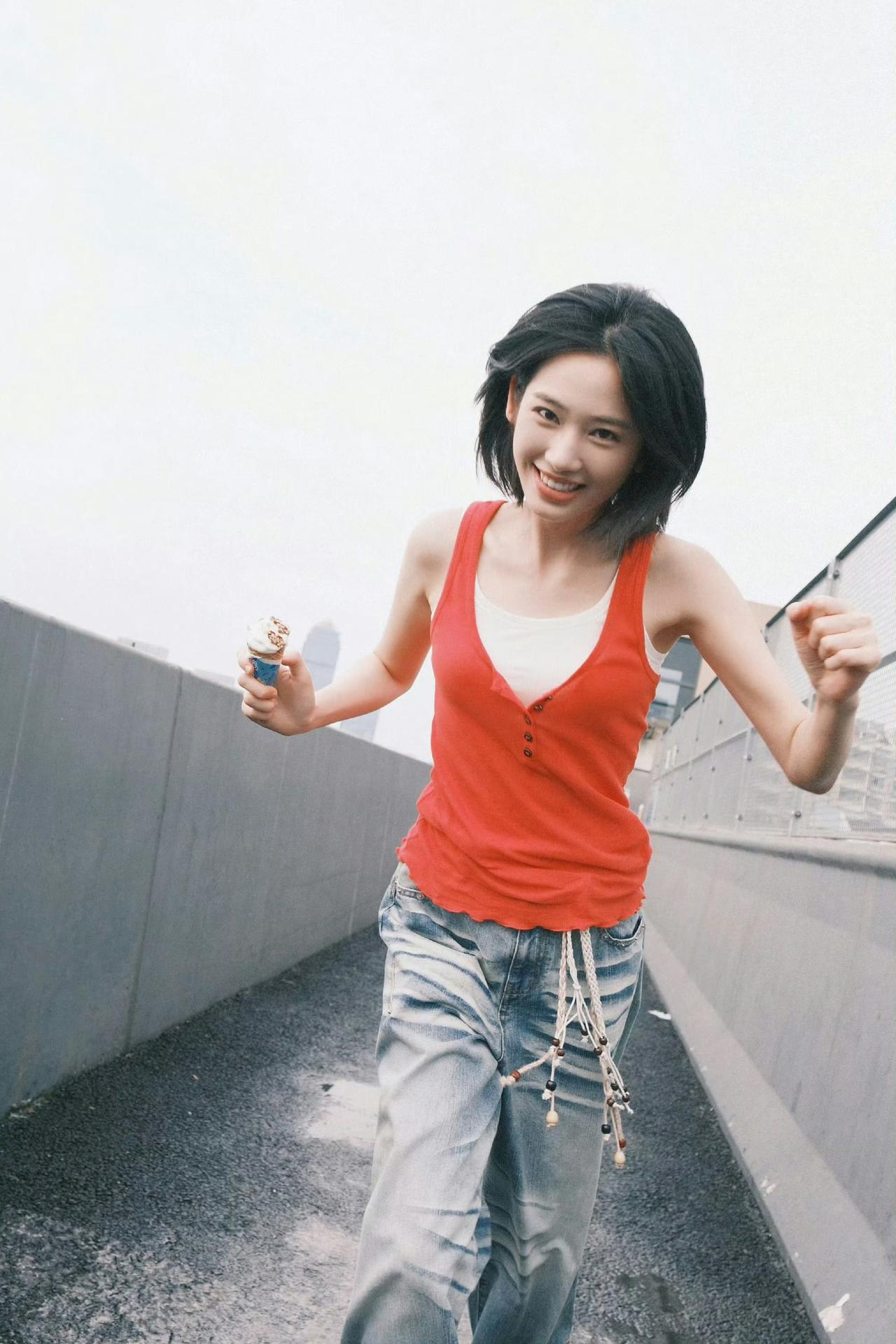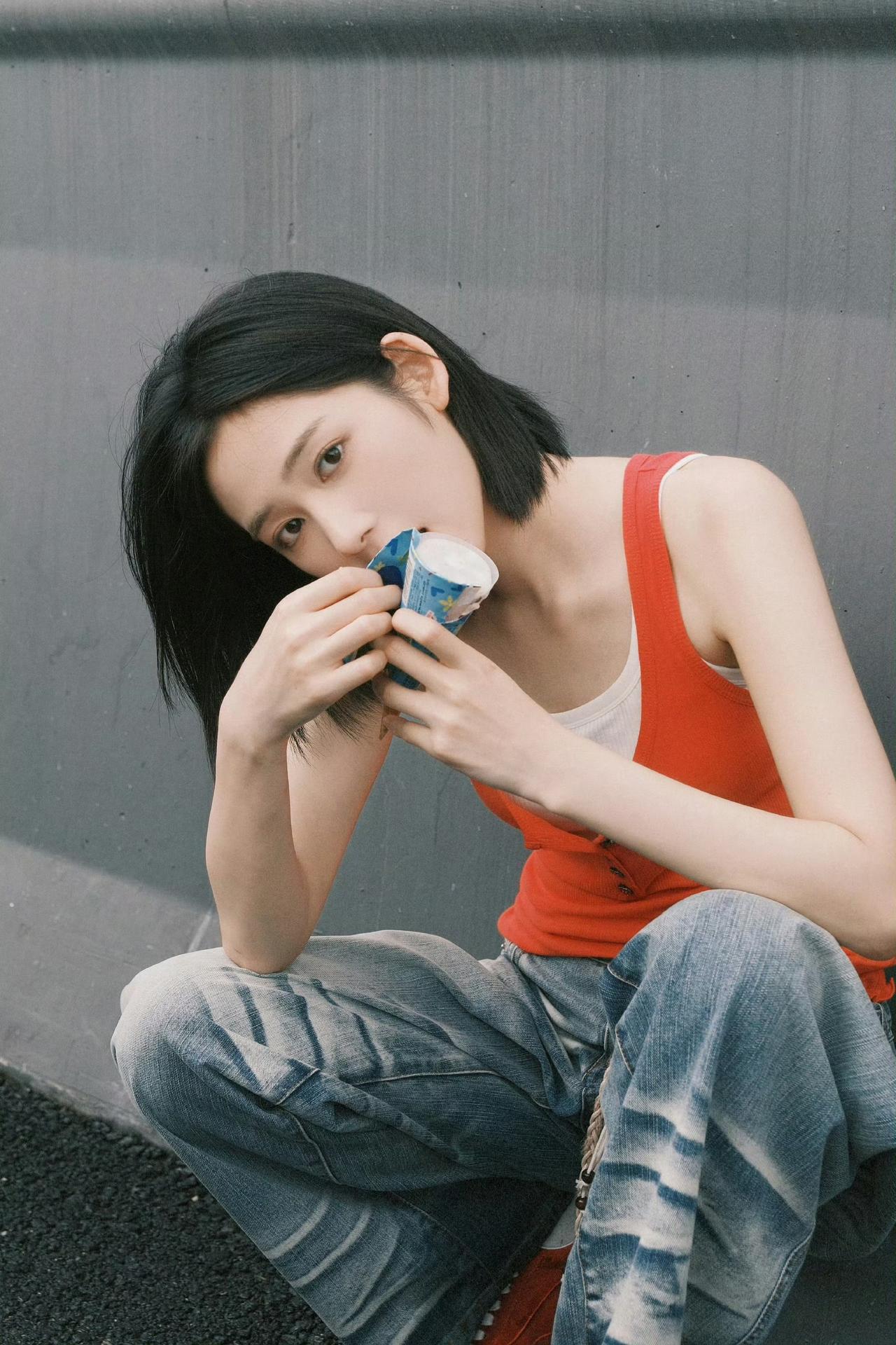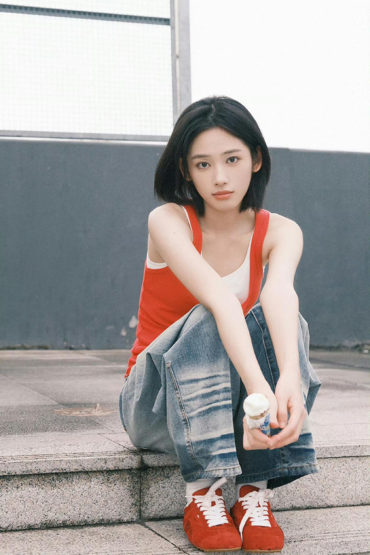 小姐姐一副国泰民安,贤妻良母的面容,搭配牛仔套装,真绝~