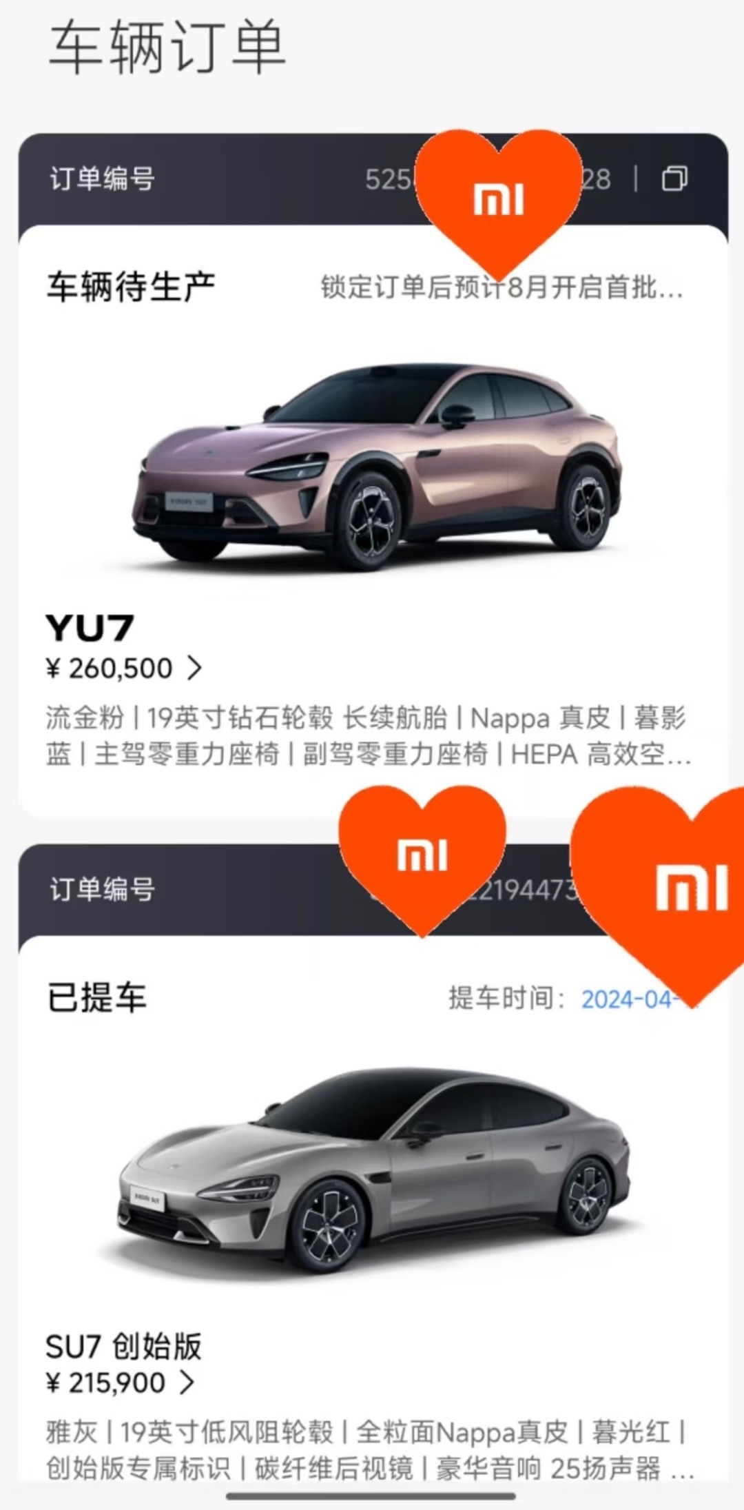 看到这个网友的晒照,就会懂得,为什么小米会如此成功。小米成功,最大的保障绝对是米粉。千千万万的米粉,认可小米,认可小米整个生态,这才是根本。一辆小米SU7,一辆小米YU7