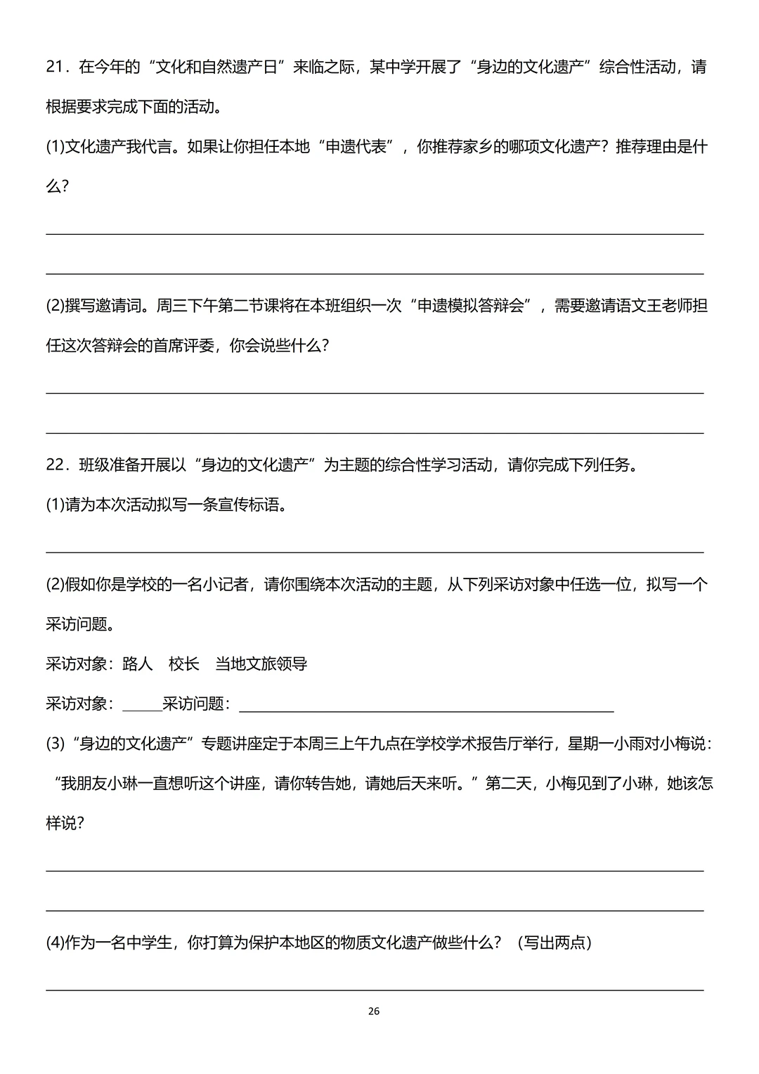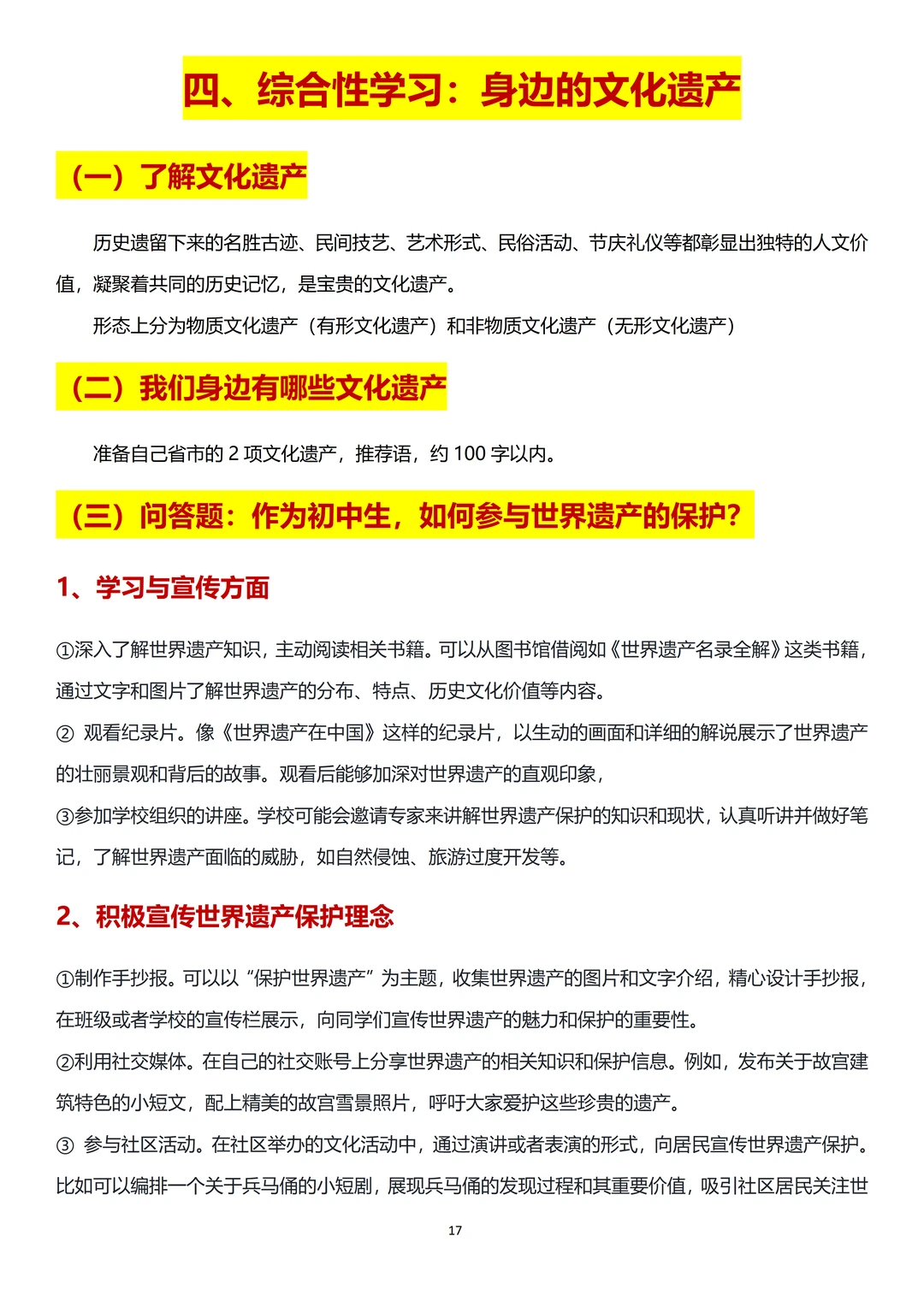 要准备自己省市文化遗产的推荐语,以及了解作为初中生,如何参与世界遗产的保护。