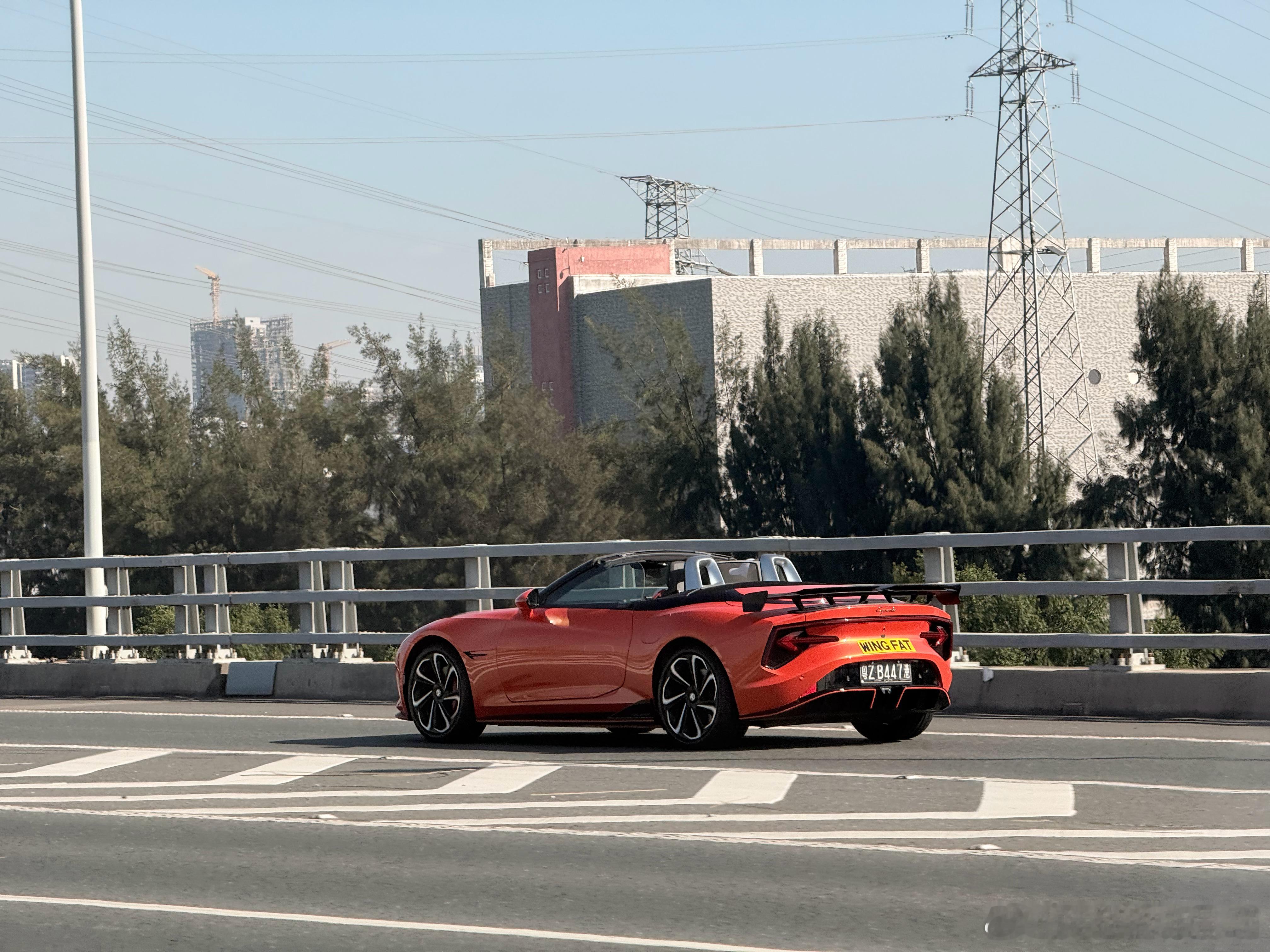 突然一台扎眼的橙色跑车从旁边超过加之开着敞篷、香港牌、两门要不是我一眼认出这是台国产车可能我会尾随他一路看个究竟