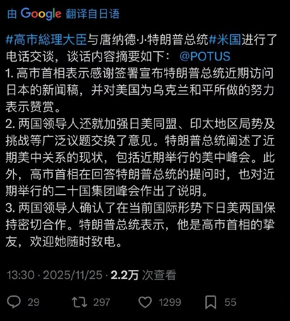 日本外务省版本的通报发了。 总结起来就是“美日联盟,坚如磐石”,赢!