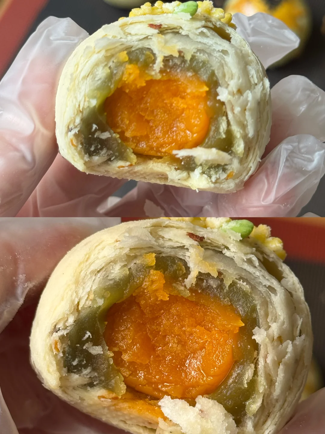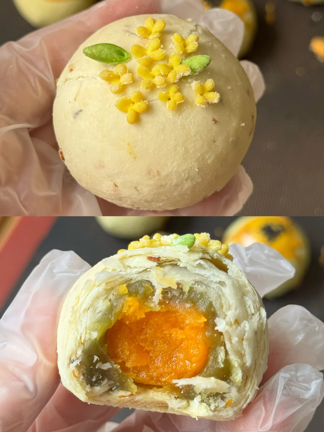 立秋啦~吃第一个秋天的蛋黄酥~十里桂花【桂花乌龙蛋黄酥】这次换了点装饰~注意,这个是黄酥开酥的,不喜欢黄油可以换回猪油哈