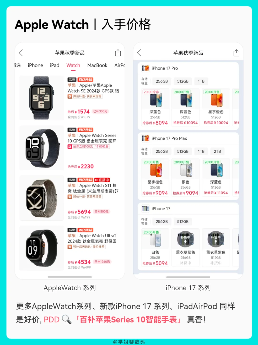 不止Apple Watch,还有苹果新款 iPhone 17 系列手机、iPad、华为手机、AirPods等也都有补贴价,近期有计划入手的宝快冲!