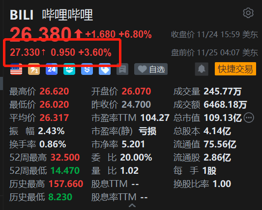在此前第三季度业绩公布后,大摩、花旗、里昂、中金等多家大行上调对哔哩哔哩的目标价。国盛证券发最新研报称,哔哩哔哩游戏业务未来或将《逃离鸭科夫》PC端扩展至主机和手机端,并通过挖掘该IP持续获益。