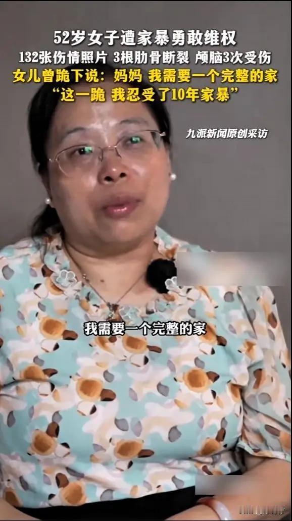 132张伤情照背后:女儿的“完整家”,竟成母亲十年家暴枷锁 11月25日国际反家暴日,重庆永川这起案例让无数人揪心:52岁阿姨的手机里,存着132张触目惊心的伤情照,每一张都记录着丈夫的暴行——3根肋骨断裂的剧痛、颅脑3次损伤的眩晕,还有无数次淤青遍布的狼狈。可本该早就逃离的她,却被女儿一句“我需要完整的家”,拴在暴力牢笼里整整十年。 “他把我头往墙上撞,一下又一下,我以为自己要不行了。”阿姨回忆起那次因出轨引发的家暴,声音仍在颤抖。女儿冲出来抱住施暴的父亲,母女俩瘫在地上抱头痛哭,可下一秒,女儿扑通跪下:“妈,别离婚,我不能没有完整的家。”这句充满稚气的哀求,像一把软刀刺穿了母亲的心。她忘了自己的伤痛,满脑子都是“不能让孩子受委屈”,却没料到,这一忍就是十年。 多少女性都栽在“完整家庭”的执念里?她们不是懦弱,而是被“母亲”的身份道德绑架。就像这位阿姨,明明懂得留存伤情照维权,却在女儿的眼泪前缴械投降。可最高法早已明确:家庭暴力不是家务事,而是实打实的犯罪,无论是拳脚相加的身体暴力,还是精神摧残的冷暴力,都受法律制裁 。 更残酷的是,孩子需要的从不是形式上的“完整”,而是没有恐惧的温暖。最高法的典型案例早已警示,长期目睹家暴的孩子,容易留下心理创伤,甚至可能重复暴力的代际传递 。女儿以为“不离婚就是完整”,却没意识到,母亲在拳头下隐忍的模样,才是对她最糟糕的教育。 132张照片,是阿姨十年血泪的见证,更是对“完整家庭”误区的沉痛控诉。家暴只有0次和无数次,忍耐换不来悔改,只会让暴力变本加厉。法律从不是摆设,人身安全保护令、报警记录、医疗凭证,都是受害者的武器。真正的爱,不是母亲独自扛下所有伤害,而是教会孩子什么是尊严与底线。 愿每个被家暴的人都能明白:破碎的婚姻不可怕,可怕的是用隐忍换来的“虚假完整”。你的勇敢逃离,才是给孩子最好的保护。如果你是这位阿姨,会如何选择?欢迎在评论区聊聊你的看法。 要不要我帮你整理一份“反家暴维权实操清单”,包含证据留存、申请保护令等关键步骤,方便你分享给更多人?家暴妻女 家庭暴力 家庭暴力的家庭 母亲暴力 河南家暴女孩