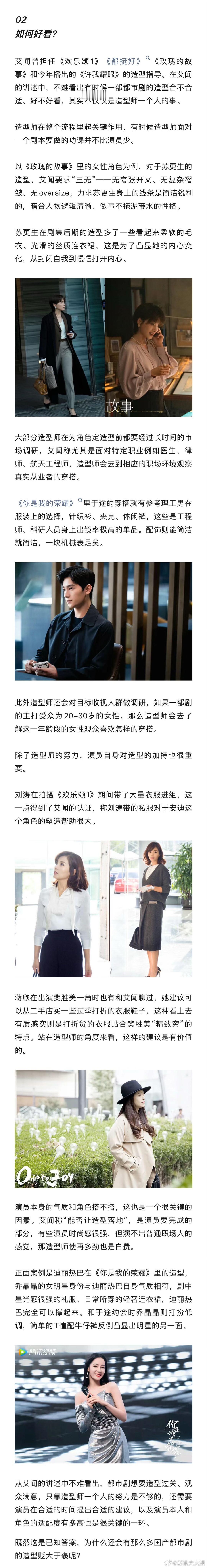 造型师艾闻称好的都市剧造型离不开造型师的努力,也离不开演员的努力,他认证刘涛在《欢乐颂1》中的私服对安迪一角大大加持,同时表示迪丽热巴所饰演的乔晶晶之所以有好的穿搭效果,是因为演员本身和角色高度相符,星光度极高。