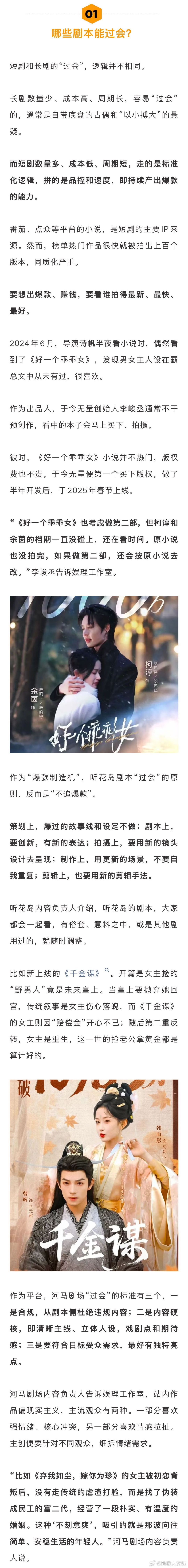 2024年6月,导演诗帆偶然看到了《好一个乖乖女》原著小说。出品人于今无量创始人李峻丞通常不干预创作,看中的本子会马上买下、拍摄…做了半年开发后,该短剧于2025年春节上线。“《好一个乖乖女》也考虑做第二部,但柯淳和余茵的档期一直没碰上,还在看时间。原小说也没拍完,如果做第二部,还会按原小说去改。”↓