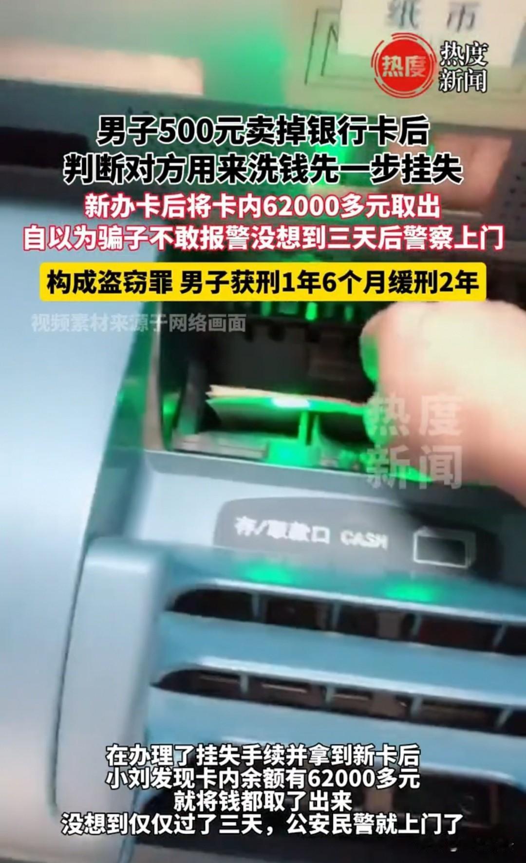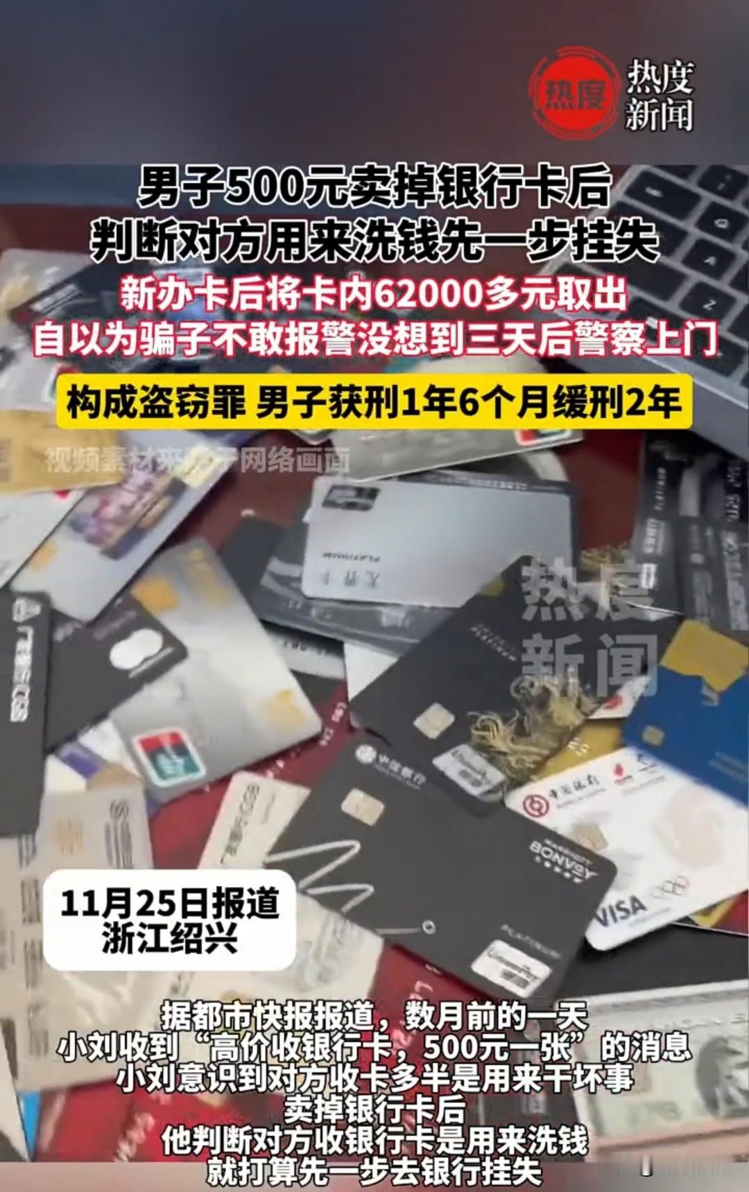 绍兴,有人收银行卡,500元一张。男子明知对方干坏事,还是卖了一张。卖完他立马去银行挂失,拿到新卡,发现里面有62000元。男子笃定对方不敢报警,当即取了出来。他觉得这笔钱会属于自己,可没想到三天后,民警就找上门。民警以盗窃罪将他抓捕,最后他被判处有期徒刑一年六个月,缓期两年执行,还被处以1万元罚金。 小刘在悠哉游哉地走在路上,突然看到有一个地方围观了很多人,走近一看,原来是收银行卡的。 小刘年纪不大,平时也在刷视频,一看就知道对方收卡的目的是洗钱。 不过他心想,500元一张也挺划算的,自己不是有好几张吗?卖一张也没关系呀。 于是他就回家拿了一张来卖,收到了500元钱,不过他觉得这事不能就这么结束,对方既然要干坏事,那我就提前去把它挂失办张新的。 他的目的是不想让对方使用自己的卡,只想从中获利500元。 可关键是,刚拿到新卡的那一刻,发现里面有6万2000元,他思索着到底取不取出来呢? 这笔钱绝对是有人被骗的财产,但他当时没有想到这一步,而是只想到这些肯定是骗子的,自己取出来了,对方肯定不敢报警。 最后,他便让桂月把这笔钱取出来,他要自己享用。 可是不到三天,民警就敲开了大门,说你涉嫌违法。 小刘一看也知道是那笔6万2000元惹的祸,不过他说我没有违法,那笔钱是骗子的,我把他们的违法资金取出来了,也相当于是保护了受害人的财产呀,要不然这笔钱被他们取走了,那可怎么办呢? 但法院认定,你如果是取出来直接上交,那不违法,或者直接报警,也不违法,说不定还要嘉奖你。 那你现在取出来,放在家里明显有想侵占这笔钱的意图,那可就不行了。 但小刘还是觉得冤枉呀,我是知道他们要干坏事,所以才提前去挂失,我这么聪明地保住了别人的财产,你们在我这里拿很容易就拿回去,但是一旦被对方把钱拿去了,你是拿不走的呀,也找不到呀,应该宽大处理才行。 最后,小刘以非法占有为目的,秘密盗取了别人的6万2000元,因此构成盗窃罪,判处了一年六个月有期徒刑。但是鉴于他的这种情况,可以缓期两年执行,同时还要罚款1万元。 小刘算是免除了牢狱之灾,但是卖卡只获得了500元钱,最后还罚款那么多,他也是后悔不已。 但总的来说,小刘不冤,当他在卖卡的那一刻,他就埋下了不好的根,即使提前去挂失,不希望对方用自己的卡去害人,算是把这个坏的根给拔除掉。 但是当面对这62000元本不属于自己的钱时,却果断地取出来还存放在家里,这又是犯下另一个错误的起因,因此肯定要为这个错误付出沉重的代价。 一、男子将银行卡卖给对方,看似构成帮信罪,最终却被认定为盗窃罪,并处1万元罚金 《刑法》第二百六十四条【盗窃罪】:盗窃公私财物,数额较大的,或者多次盗窃、入户盗窃、携带凶器盗窃、扒窃的,处三年以下有期徒刑、拘役或者管制,并处或者单处罚金;数额巨大或者有其他严重情节的,处三年以上十年以下有期徒刑,并处罚金。 《刑法》第二百八十七条之二【帮助信息网络犯罪活动罪】:明知他人利用信息网络实施犯罪,为其犯罪提供支付结算等帮助,情节严重的,处三年以下有期徒刑或者拘役,并处或者单处罚金;有前两款行为,同时构成其他犯罪的,依照处罚较重的规定定罪处罚。 男子卖卡行为符合帮信罪,但后续挂失补卡取6.2万元的行为,是以非法占有为目的秘密窃取他人控制的资金,单独构成盗窃罪。因盗窃罪处罚更重,法院择一重罪定罪,并处1万元罚金。 二、男子除承担刑事责任外,还会受到金融惩戒 依据《中国人民银行关于进一步加强支付结算管理防范电信网络新型违法犯罪有关事项的通知》规定:对出租、出借、出售银行账户(含银行卡)的个人,银行将暂停其银行账户非柜面业务,5年内不得新开账户;相关失信信息将纳入个人征信系统。 男子出售银行卡违反支付结算规定,会被暂停5年银行非柜面业务、不得新开账户,失信信息记入征信,影响贷款、信用卡申请等金融活动。 对于此事,大家如何看? 素材来源于热度新闻,2025年11月25日