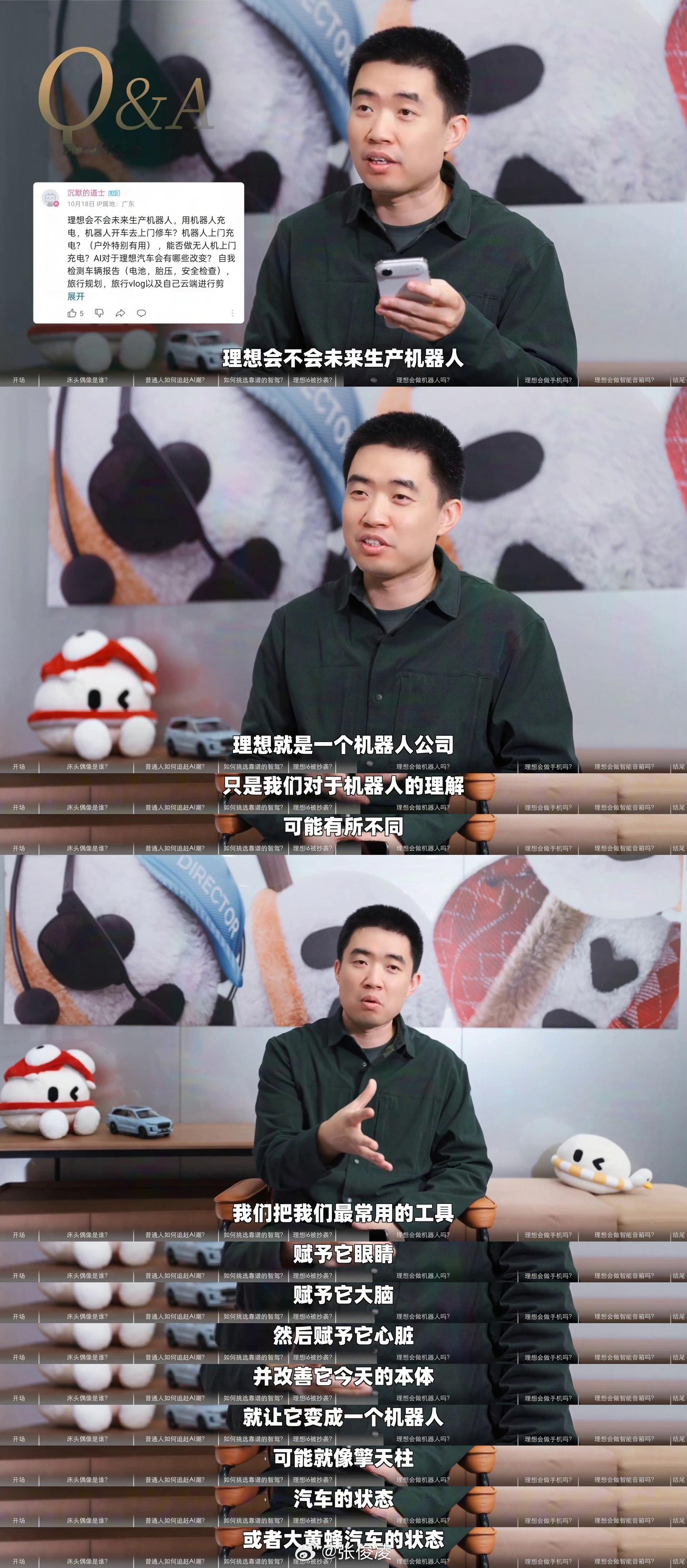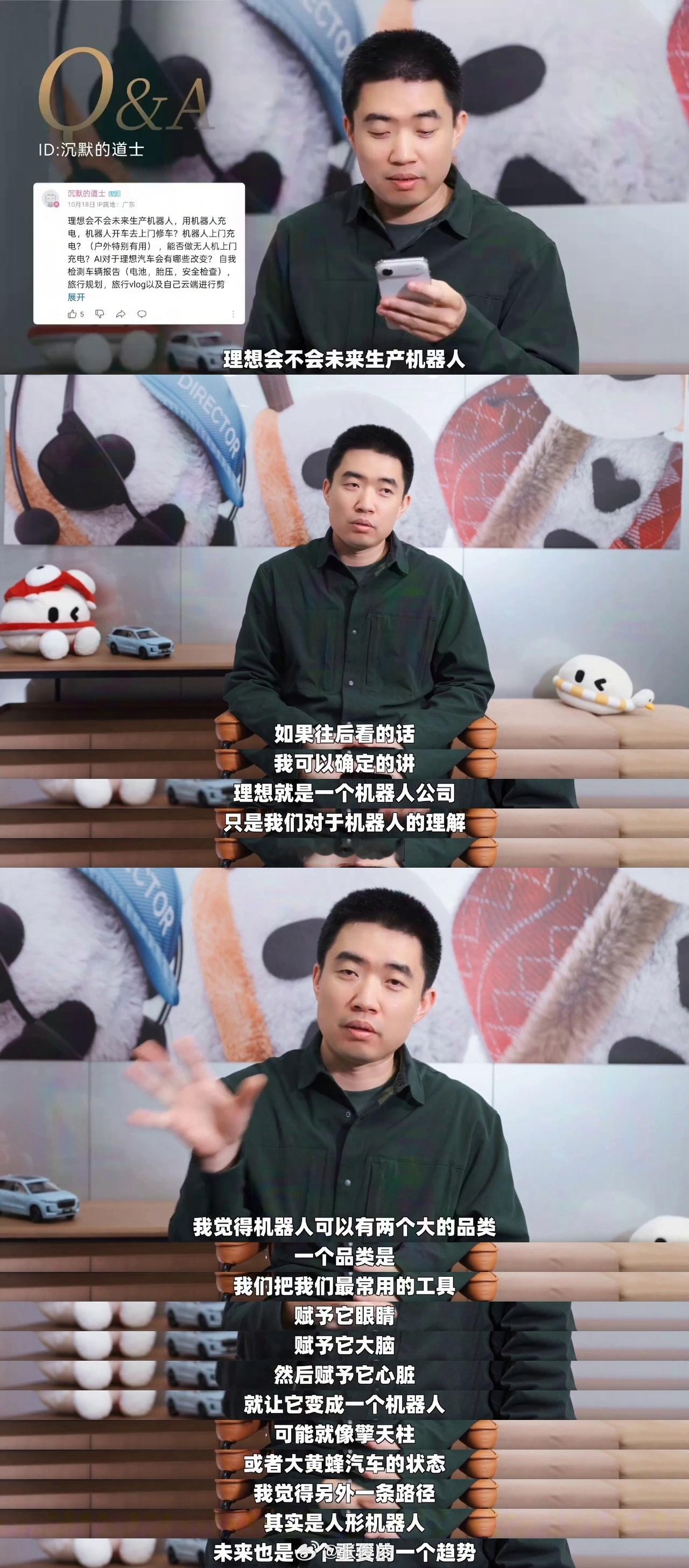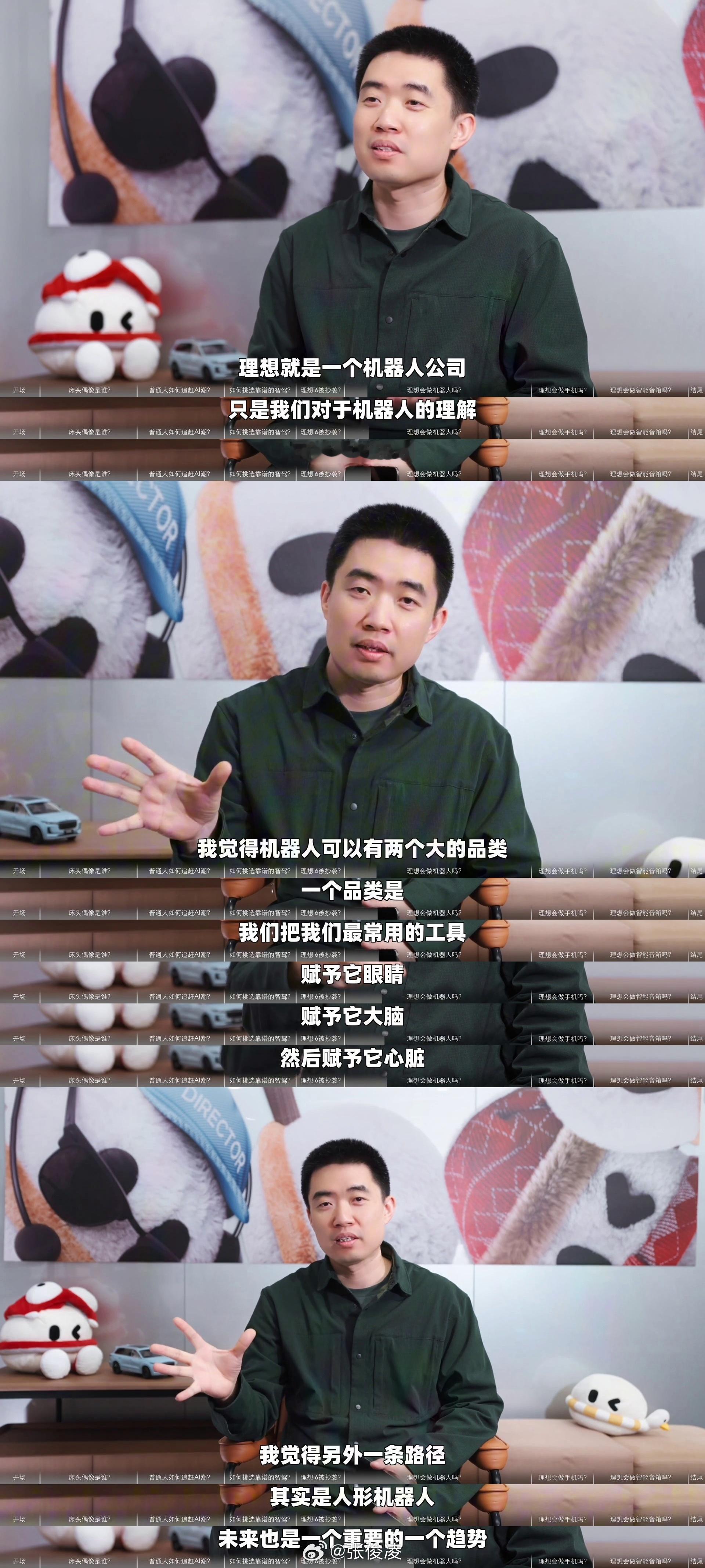 李想的意思是:理想汽车本质上是一家机器人公司,但其对“机器人”的定义更为宽泛和务实。 对此他提出了机器人发展的两大路径:1. “工具赋能”路径(理想的路径): 不为机器人创造新形态,而是将我们最高频、最高效的现有工具(如汽车、充电桩)进行“机器人化”改造,为它们赋予“眼睛”(感知系统)、“大脑”(决策系统)和“心脏”(动力/执行系统),使其成为智能机器人。他认为这条路在未来3-5年更具现实意义和商业价值。2. “人形机器人”路径: 承认人形机器人是未来的重要趋势,但隐含之意是当前技术挑战和商业化路径更长。他还举了两个关键例子:· 汽车机器人: 实现L4级自动驾驶的汽车,本身就是一个在复杂物理世界中自由移动的机器人。· 充电机器人: 将整个充电站改造为一个智能系统,而非派一个“人形机器人”去插拔充电枪,这是对环境和任务更高效、更低成本的解决方案。李想的这番论述非常精辟,不仅定义了理想的战略,也揭示了科技产业化的一个关键逻辑。1. “场景至上”的务实主义哲学李想的观点体现了一种强烈的“场景至上”的务实主义。他不追求形态的酷炫,而是追求在现有环境和习惯下,实现效率的最大化。给汽车赋予自动驾驶能力,它就能在已有的公路网络上运行;将充电站智能化,它就能服务于现有的电动车生态。这种思路极大地降低了商业化落地的门槛,避免了为适配机器人而大规模改造人类世界的巨大成本。这与苹果公司“技术应该无缝融入生活”的产品哲学有异曲同工之妙。2. 对“机器人”定义的重新审视——功能定义形态传统上,我们被影视作品影响,认为机器人就应该是“人形”的。李想则提出了一个更本质的定义:一个能自主感知、决策和执行任务的智能体。形态应服务于功能,而非被形态所束缚。汽车为什么不能是机器人?一个智能化的工厂流水线、一个无人仓库,本质上都是一个庞大的机器人系统。这打破了形式的桎梏,让技术创新更聚焦于解决实际问题的“内核”。3. 理想的战略纵深与生态壁垒这番论述清晰地勾勒了理想的战略蓝图:它不只是一家造车公司,而是在构建一个由“智能移动机器人”(汽车)和“智能能源机器人”(充电网络)组成的庞大机器人物联网生态。在这个生态里,各个“机器人”之间可以高效协同(如汽车自动驶入充电站完成无人补能)。这不仅是技术领先,更是系统级和生态级的竞争,能构筑起极高的商业壁垒。4. 潜在挑战与平衡当然,这条路径也并非没有挑战:· 长期与短期的平衡: 过度聚焦于“工具赋能”路径,可能会在人形机器人这个可能代表终极通用平台的技术上落后。需要把握好资源分配的平衡。· “灵魂”之争: 当汽车成为机器人,其核心价值就从传统的机械制造,转移到了人工智能、芯片、操作系统等“大脑”和“神经”上。理想能否在这些核心技术上持续保持领先,是长远的关键。总的来说,李想的观点是一次对机器人产业浪漫主义想象的“祛魅”,回归到了商业和技术的本质。他指出的是一条基于现有产业基础、以提升效率和用户体验为核心、快速实现规模化商业变现的机器人发展路径。这不仅是对理想公司战略的阐述,也值得整个科技行业深思。