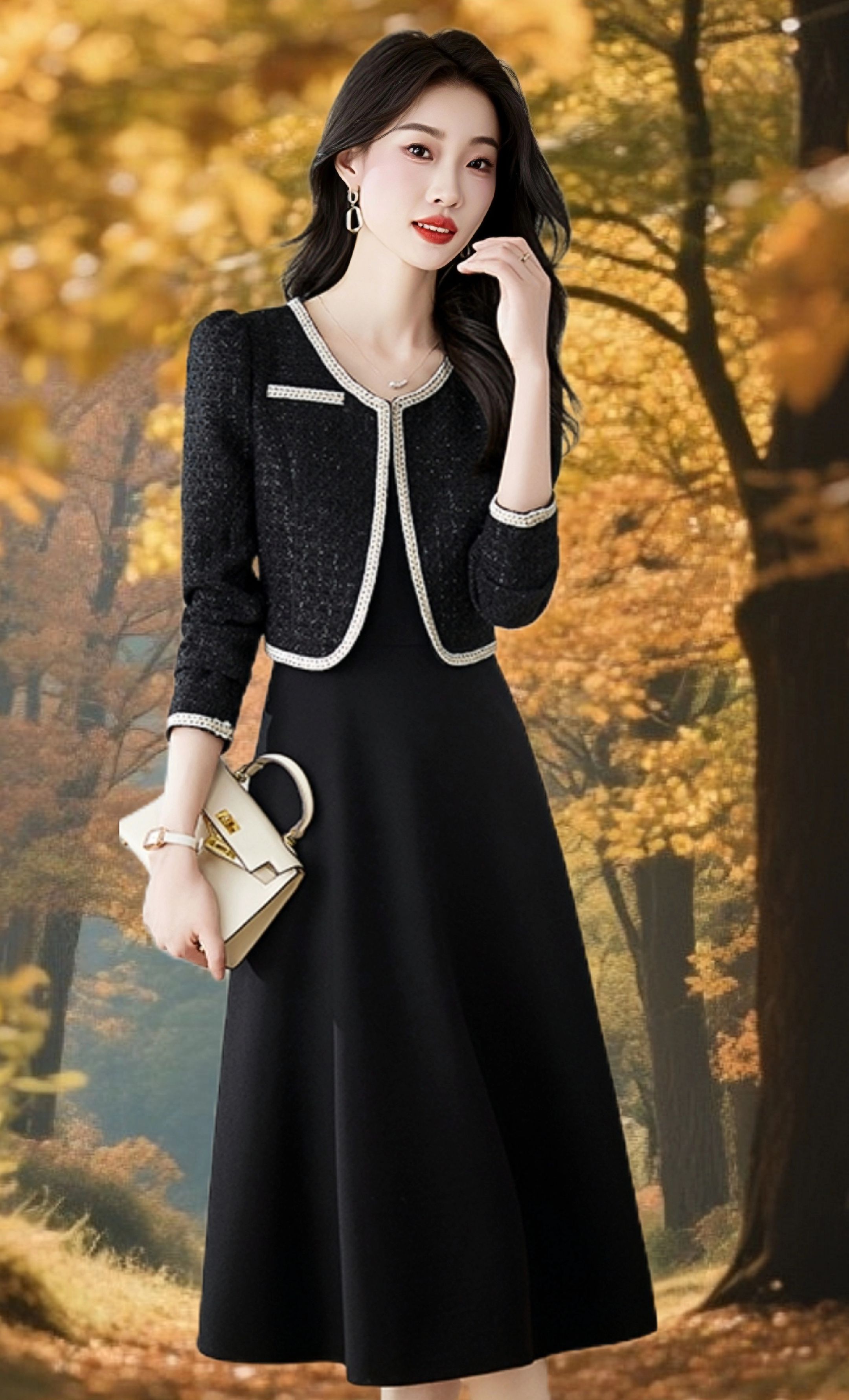 温柔又精致的白色小香风套装,轻松拿捏秋季氛围感。外套采用细腻面料,触感柔软,版型挺括,修饰肩颈与手臂线条;内搭同色系连衣裙,简约中带着小心机,裙摆微展,优雅中不失灵动。整体设计融合法式浪漫与现代都市感,无论是日常通勤、约会聚餐,还是参加小型宴会,都能让你瞬间气场全开。