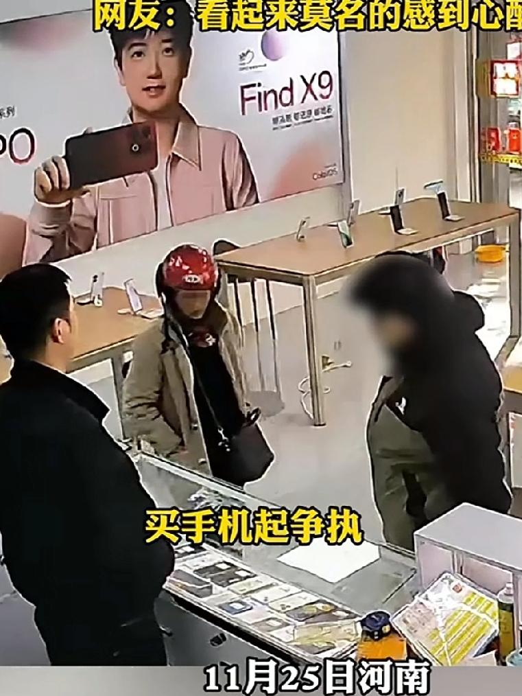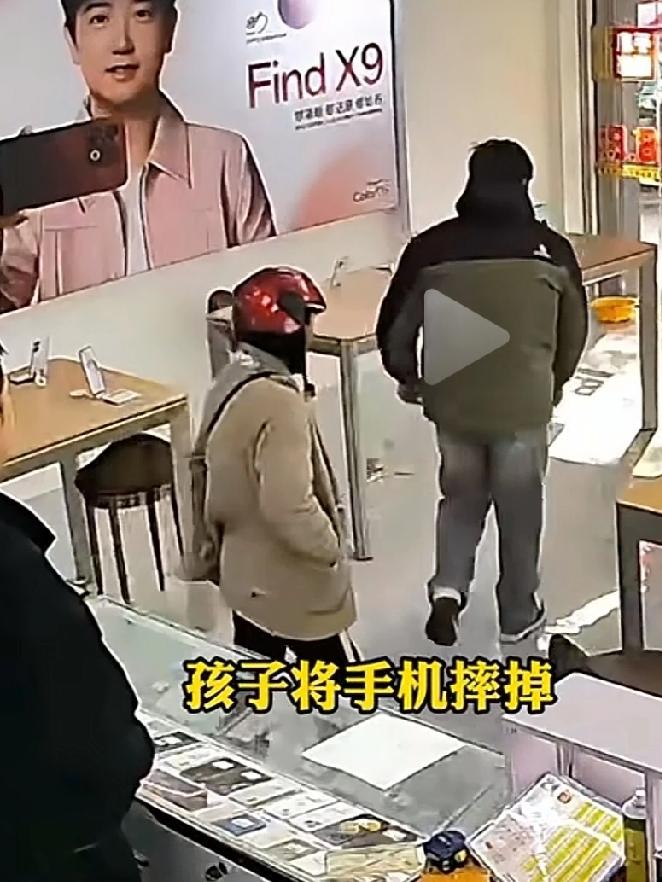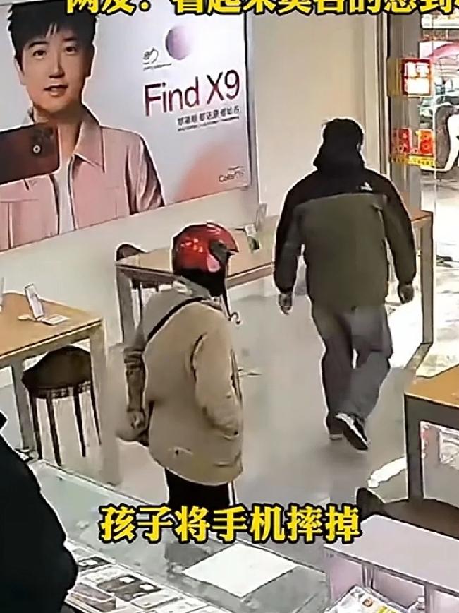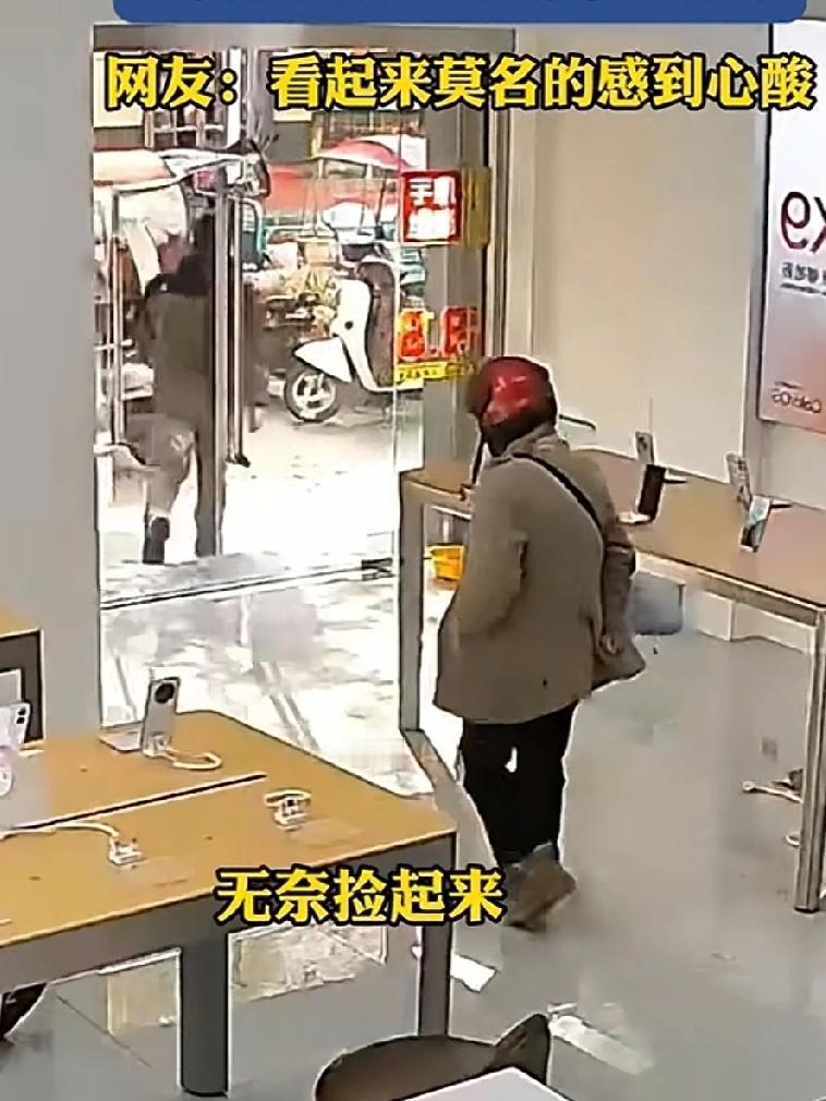 手机店里,一对母子因为手机起了争执,一言不合儿子将手机摔掉,只听啪的一声,手机被摔到了门口,儿子转身气冲冲的走了,这时,母亲走到门口看着离去的儿子,然后无奈的捡起了被摔坏的手机,看着被摔坏的手机,母亲流下了心酸的泪! 原本母亲高兴的带儿子来店买手机,没想到是这个结果,买的手机可能不应儿子的心吧!